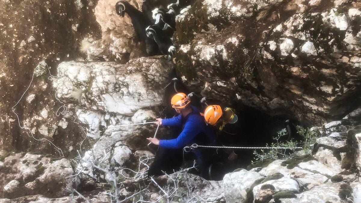 Konya'nın Güneysınır ilçesinde sarp ve dik kayalıklarda mahsur kalan 16 keçi, AFAD'ın özel dağcı ekibi tarafından kurtarıldı.