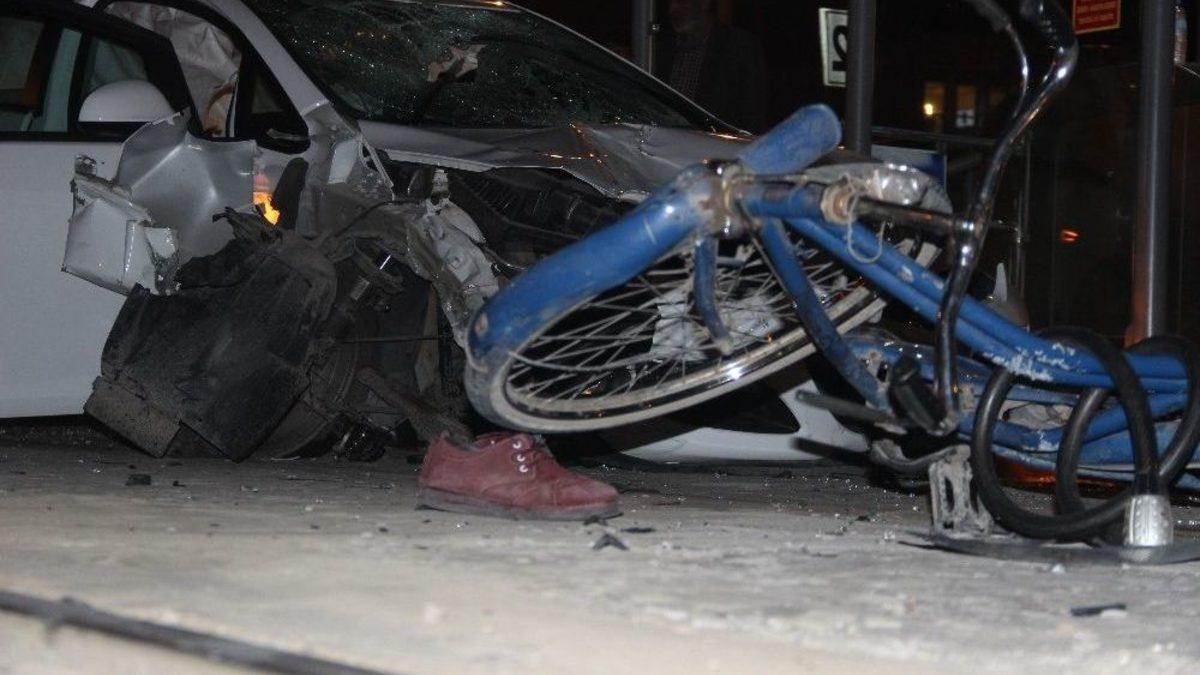 Konya’da kontrolden çıkan otomobil, önce karşıya geçmek isteyen bisiklet sürücüsüne çarptı, ardından tramvay durağına daldı. Kazada ağır yaralı olarak hastaneye kaldırılan bisiklet sürücüsü kurtarılamayarak hayatını kaybetti.Kaza, saat 01.00 sıralarında merkez Selçuklu ilçesi Kule tramvay durağında meydana geldi. Edinilen bilgiye göre, Mehmet Kaan Y. (22) idaresindeki 07 MPK 43 plakalı otomobil Ahmet Hilmi Nalçacı Caddesi üzerinden kunduracılar istikametine seyir halindeyken iddialara göre, kendisine kırmızı ışığın yandığı sırada karşıya geçmek isteyen Mehmet Sert (37) idaresindeki bisiklete çarptı, ardından hızla tramvay durağına girdi. Çevredekilerin ihbarı üzerine olay yerine polis ve ambulans sevk edildi. Kazada ağır yaralanan bisiklet sürücüsü Sert, olay yerine sevk edilen ambulans ile Konya Numune Hastanesine kaldırıldı. Mehmet Sert, burada yapılan tüm müdahalelere rağmen kurtarılamayarak hayatını kaybetti. Kazada hafif şekilde yaralanan sürücü Mehmet Kaan Y. İle yanında bulunan arkadaşı Ahmet Ş., kontrol amaçlı hastaneye kaldırıldı.Bisikletlinin geriye kalan ayakkabıları yürek burktuKarşıdan geçmek isterken hızlı olduğu iddia edilen otomobilin çarpması sonucu kaldırıldığı hastanede hayatını kaybeden Mehmet Sert’in olay yerindeki ayakkabıları yürek burktu. Diğer taraftan, kazaya karışan aracın kiralık olduğu öğrenilirken kaza yapan gencin yakınları kaza yerine gelerek şoka giren sürücüyü teselli etti.Fotoğraflarını çektilerBu sırada çevrede bekleyen meraklı vatandaşların cep telefonları ile kazayı görüntülemeye çalışmaları da dikkat çekti. Kaza nedeniyle aksayan tramvay seferleri aracın çekilmesiyle normale döndü. Kazayla ilgili soruşturma başlattı.
