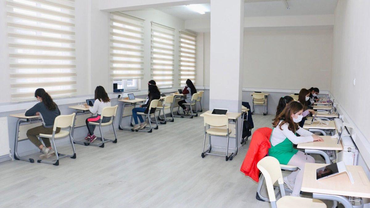 32 öğrenci kapasiteli olan EBA Destek Sınıfı’nda, 5 adet derslik yer alıyor. Masalara koyulan tabletler sayesinde öğrenciler; görevliler nezaretinde derslerinden geri kalmayarak eğitimlerini sağlıklı bir şekilde sürdürüyor. Ders saatlerine göre gruplar halinde eğitim alan öğrencilerin sağlığı ön planda tutularak, tablet ve masalar da düzenli olarak dezenfekte ediliyor.