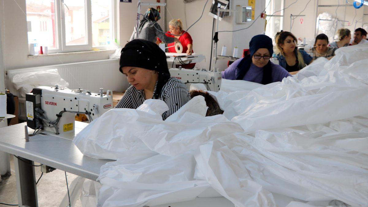 Zonguldak'ın Çaycuma ilçesine bağlı Karapınar beldesinde, askeri kıyafet üretimi bırakılarak koronavirüse karşı sağlık görevlilerinin giydiği koruyucu tulum üretilmeye başlanan tekstil fabrikasında, siparişleri karşılamak için vardiya sayısı artırıldı. Fabrikada, Çin, Rusya, İtalya ve İran başta olmak üzere birçok Avrupa ülkesinden gelen 1 milyon tulum talebini karşılamak için gece gündüz üretim yapılıyor.