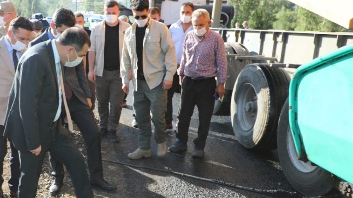 Öksüz, İl Özel İdaresi Genel Sekreteri Vali Yardımcısı Zafer Yiğit ile birlikte incelediği yol çalışmasının kısa sürede tamamlanmasını istedi.