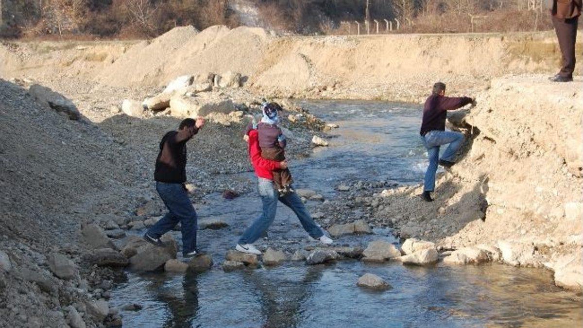 Çaycuma ilçesine bağlı Şeyhoğlu, Kayabaşı, Erenköy, Kalaycıoğlu, Esenlik, Pazar altı köyünde yaşayan vatandaşlar, çocuklarını sırtlarına alarak bin bir zorlukla karşıya geçiriyorlar. Karşıya geçişlerde ilginç görüntüler meydana gelirken, bazı vatandaşlar da ayakkabılarını ve çoraplarını çıkararak, çocukları sırtına alarak karşıya geçiriyorlar. Bazıları da taşların üzerine basarak, yaklaşık 2 metre yüksekliğindeki bir yere tırmanarak çıkmaya çalışırken, kimileri de vatandaşların birbirlerine yardım etmesiyle yüksekliği çıkabiliyor. Vatandaşlar, kış şartları ağırlaştığı zaman daha çok güçlük çektiklerini dile getirirken, yetkililerden köprülerinin yeniden yapılmasını istediler. Vatandaşlardan Sabahattin Kısa, “Köy hizmetleri tarafından yapılan köprümüz, bundan yaklaşık 3-5 sene önce sel nedeniyle göçtü. Buradan geçebilmek için köylünün yardımıyla buradan bir yol yapıldı. Bu yolda 3-5 gün önce şikayet üzerine kapatıldı. Buradan 4-5 mahalle Bakacakkadı beldesine gidip geliyor. Ayrıca bizim Kayabaşı köyü ve mahallelerinin burada aile hekimliği var. Gelip gitmek için buradan geçerken çok güçlük çekiyoruz. Yetkililerden bu yıkılan köprümüzün eski haline getirilerek vatandaşın hizmetine sunulmasını istiyoruz. Kadınlar ve çocuklar buradan geçerken çok zorluk çekiyor. Vatandaş çocuğunu sırtına alarak taşların üzerine basarak geçiriyor. Karşı tarafa geçtiğimizde yaklaşık 2 metre boyunda bir yerden çıkmaya çalışıyorlar. İnsanların yardımıyla çıkabiliyorlar. Buradan Şeyhoğlu, Kayabaşı, Erenköy, Kalaycıoğlu, Esenlik, Pazar altında yaşayan vatandaşlar bu yolu kullanıyor” dedi.