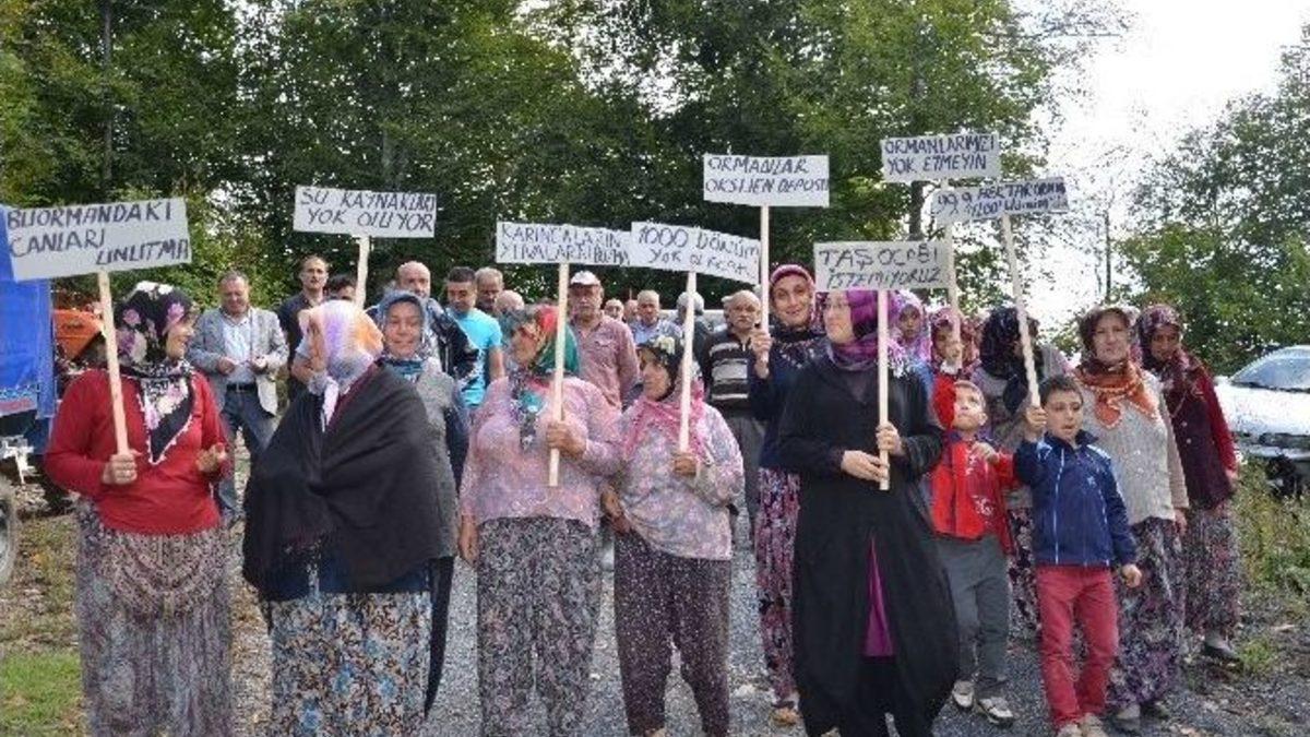 Zonguldak’ın Alaplı ilçesinde açılan taş ocağına tepki gösteren vatandaşlar yürüyüş düzenleyip eylem yaptı.Alaplı ilçesi Kasımlı köyü Ölüce Mahallesi yakınlarında özel bir firma tarafından açılan taş ocağının kapanmasını isteyen yaklaşık 250 kişi, “Karıncaların yuvaları bozulmasın”, “Su kaynakları yok oluyor”, "Taş ocağı istemiyoruz" yazılı pankartlarla yaklaşık beş kilometre yürüyerek, iş makinesini çalıştığı alana gitti. Köylüler, mevcut taş ocakları nedeniyle bölgede doğa tahribatı yaşandığını ve taş ocağını nedeniyle hem doğanın hem de köylülerin fındık bahçelerinin olumsuz etkilendiğini belirterek, taş ocakları mevkisine eylemlerini sürdürdüler. Çok sayıda vatandaş eyleme destek verirken, duruma tepki gösteren vatandaşlar, “Çocuklarımızı okula götürürken, kamyonlardan kaçmak istemiyoruz artık. Çocuklarımızı rahat bir şekilde dışarı yollayamıyoruz" dediler.Eylemde gazetecilere açıklamada bulunan köy sakini Mustafa Demirhan, "2006-2008 yılından bu yana buradaki orman katliamını durdurabilmek için dar imkanlarımızla çok mücadele ettik. Şunu anladım ki milletimizle devletimizi karşı karşıya getirmeye çalışan bürokratları bugüne kadar yenemedik. Biz köylüler olarak gerektiğinde biz burada nöbet bekleyerek ormanlarımız katlettirmeyeceğiz. Bölgemizin heyelan bölgesi olmasını istemiyoruz.Gerek Başbakanımızdan gerekse bakanımızdan bu tür konularda çalışma yaparak taş ocaklarına ihtisas edilmelerini istiyoruz. Devletimizi ilgilendiren burada büyük altın madenleri cevherler yok. Bildiğimiz her yerde buluna bilinen taş var bu taşlar içinde ormanların katledilmesini istiyoruz. Adil bir şekilde bu olayın tecelli etmesini istemekteyiz” diye konuştuKöyde yaşayan kadınlar ise "Biz taş ocağını şundan dolayı istemiyoruz. Taş ocağını faaliyette olduğu yerin altında evlerimiz var bahçelerimiz var. Komşularımızın taş ocağı yüzünden evi yıkıldı. Su yataklarımız kayboldu. Burada güzelim ormanlarımız var. Ormanlarımızın katledilmesini istemiyoruz. Orman olmayınca biz nasıl yaşayacağız. Bizi devlet o zaman alsın başka bir yere götürsün. Biz yeşilimizi doğamızı istiyoruz" dediler.Jandarmanın geniş güvenlik önlemi aldığı eylemin ardından köylüler, olaysız şekilde dağıldı.
