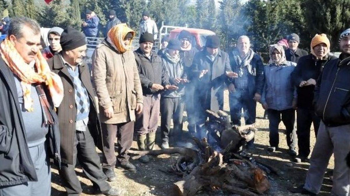 İzmir’in Kemalpaşa ilçesinde, otoyol çalışması için açılacak taş ocağını protesto eden köylüler, taş ocağının açılmaması için nöbet tutmaya başladı.İzmir-İstanbul otoyolu inşaatında kullanılmak üzere Kemalpaşa ilçesi Akalan köyünde taş ocağı şantiyesi kuruldu. Dün sabah saatlerinde Akalan, Sütçüler, Çambel köyü sakinleri, taş ocağı kurulmaması için toplandı. Jandarma ekipleri şantiye çevresinde güvenlik önlemi alırken bir kepçe ilk çalışmayı başlatmak üzere Jandarma Robokop timleri eşiliğinde çalışmak için hareketlendi. Kepçenin hareketlendiğini gören yaklaşık 200 köylü, kepçeyi taş yağmuruna tuttu. Kepçenin camları kırılırken kepçe etrafında güvenlik önlemi alan jandarmalar taşların hedefine girdi. Olaylarda, iki jandarma yaralandı. Şantiye alanına giren köylüler, şantiyedeki kamyon, prefabrik evlerin, iş makinalarının camlarını ve kapılarını taş yağmuruna tutup kırdı.Dün yaşanan olaylardan sonra şantiye alanında çalışmalar durdu. Şantiye karşısına kamp kuran köylüler iş makinalarının çalışmaması için nöbet tutmaya başladı. Dün başlanan nöbete, sıcaklığın sıfırın altına düşmesine rağmen devam edildi. Isınmak için odunlar ile ateş yakan köylüler nöbetlerine devam ediyor. Hüseyin Ay adlı vatandaş, "Bir yandan tren yolu, bir yandan otoban geçiyor bizim köy sıkıştı. Biz köyümüzün yanına taş ocağı istemiyoruz. İzmir’de 50 yılın en soğuğu yaşandı dün gece nöbetteydik. Bu taş ocağı şantiyesi kalkana kadar biz burada gece gündüz nöbet tutmaya devam edeceğiz" dedi. Bir diğer köylü Fatma Dursun ise, "Burada ölmek var dönmek yok. Askerin burada işi yok askerimizi karşımıza çıkarmasınlar. Biz köyümüz için buradayız. Yaşım 60, işim bitmiş. Bundan sonra çocuklarım ve torunlarım için dönüş yok buradan" diye konuştu."GEÇİM KAYNAĞIMIZ ELİMİZDEN ALINIYOR"Köylülerden Sevcan Kılıç, "Tren yolu geçti evlerimiz yıkılma tehlikesi geçirdi. Yaptıracak gücümüz yok. Buraya taş ocağı yaparlarsa geçim kaynağımız kiraz, zeytin ağacı mahvolur. Neyle geçineceğiz? Evde hastamız var gidip yedirip içiriyoruz tekrar buraya nöbet tutmaya geliyoruz. Sonuna kadar nöbet tutacağız" dedi. Çevreyi gösteren Hasan Ay ise, "Bakın gördüğünüz gibi 200 metre uzaklıkta çocuklarımızın gittiği okulumuz var. Hemen yanında da evlerimiz var. Evlerimizin ve okulumuzun karşısında hemen taş ocağı kurulacak. Buradaki daha önceki çalışmalarda orman tahrip edildi. Şimdi bu taş ocağı açılınca bizim geçim kaynağımız zeytin alanları, kiraz ağaçları, sebze alanları zarar görecek tozun toprağın arasında kalacak. Biz neyle geçinelim. Biz bu taş ocağını istemiyoruz. Şantiye alanı buradan kalkana kadar çoluk çocuk herkes nöbet tutacak" diye konuştu.Köylüler, kazı alanına yaklaşık 500 metre mesafedeki Akalan İlkokulu’na 4 gündür çocuklarını göndermediklerini belirtti.DÜN JANDARMAYA ’TAŞ’, BUGÜN ’ÇAY’Öte yandan, taş ocağına karşı eylem yapan mahalle sakinlerinden diyaliz hastası Veli Çam’ın, bölgeye gelen hasta nakil aracıyla diyalize götürülmesi ise dikkat çekti. Ayrıca dün yaşanan olaylarda şantiyenin kepçesini korumak için güvenlik önlemi aldığı sırada kepçeye atılan taşların hedefine giren jandarma ekipleri, bugün köylülerin nöbet yerine gelip sohbet etti. Köylüler jandarmaya çay ikram ederken, "Bizim askerimizle hiçbir alıp veremediğimiz yok. Bizim derdimiz taş ocağı" dedi. Jandarma komutanı ise, bu durumların kanun yolu ile halledilmesi gerektiğini söyledi. Köylülerin taş ocağı nöbeti devam ediyor.