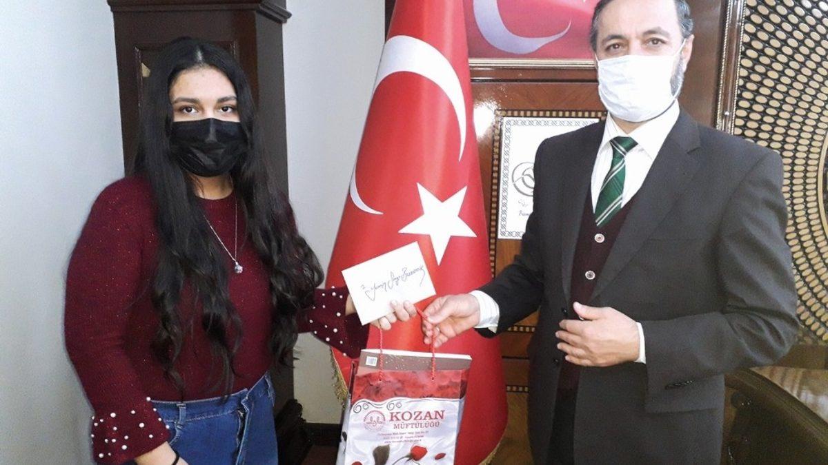 Dereceye giren öğrencileri Kozan Müfütüsü Celil Karaca makamında ağırlayarak tebrik etti. Maske, mesafe ve hijyen kurallarına dikkat edilerek gerçekleştirilen etkinlikte Müftü Celil Karaca tarafından 1. Gelen öğrenciye 150 Türk Lirası, 2 gelen öğrenciye 100 Türk Lirası ve 3. Gelen öğrenciye de 75 Türk Lirası Nakit Para ödülü ile çeşitli kitap ve hediyeler takdim edildi.