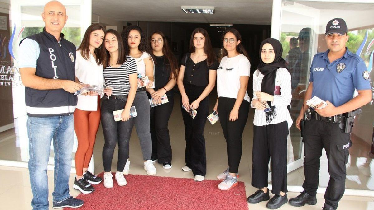 Manisa’nın Kula ilçesinde İlçe Emniyet Müdürlüğü’ne bağlı polis ekipleri, güvenli eğitim öğretim ortamı için İçişleri Bakanlığı tarafından başlatılan proje kapsamında üniversite öğrencilerine bilgilendirme broşürü dağıttılar.