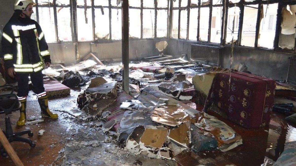 Manisa’nın Turgutlu ilçesinde resmi olmadığı iddia edilen Kur’an kursunda çıkan yangın, itfaiye ekipleri tarafından söndürüldü.Edinilen bilgiye göre, Turgutlu Yedi Eylül Mahallesi Gürleyen Sokak’ta bulunan 3 katlı binada Kur’an kursu olarak hizmet verildiği öğrenilen çatı katında yangın çıktı. Olay yerine çok sayıda itfaiye ekibi sevk edildi. Yangın sırasında içeride bulunan kadınlar kendilerini dışarı atarken, itfaiye ekiplerinin yoğun çabaları ile söndürülen yangında büyük maddi hasar oluştu. Plastik malzemeden olan çatı aksamının yangının büyümesinde büyük rol oynadığı ifade edildi.Kursun resmi olmadığı iddia edilirken, elektrik kontağından çıktığı tahmin edilen yangınla ilgili inceleme başlatıldı.