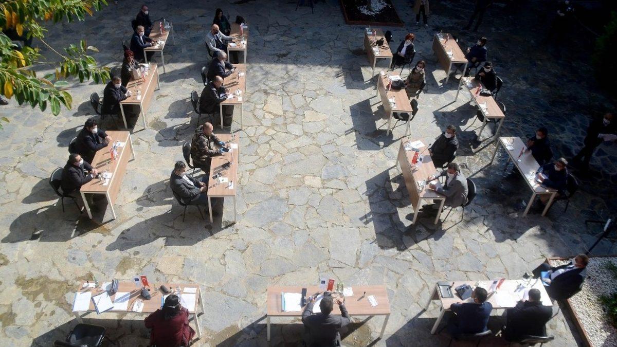 Kuşadası Belediye Meclisi, koronavirüs tedbirleri kapsamında sosyal mesafe dikkate alınarak Kervansaray’da olağanüstü toplandı.