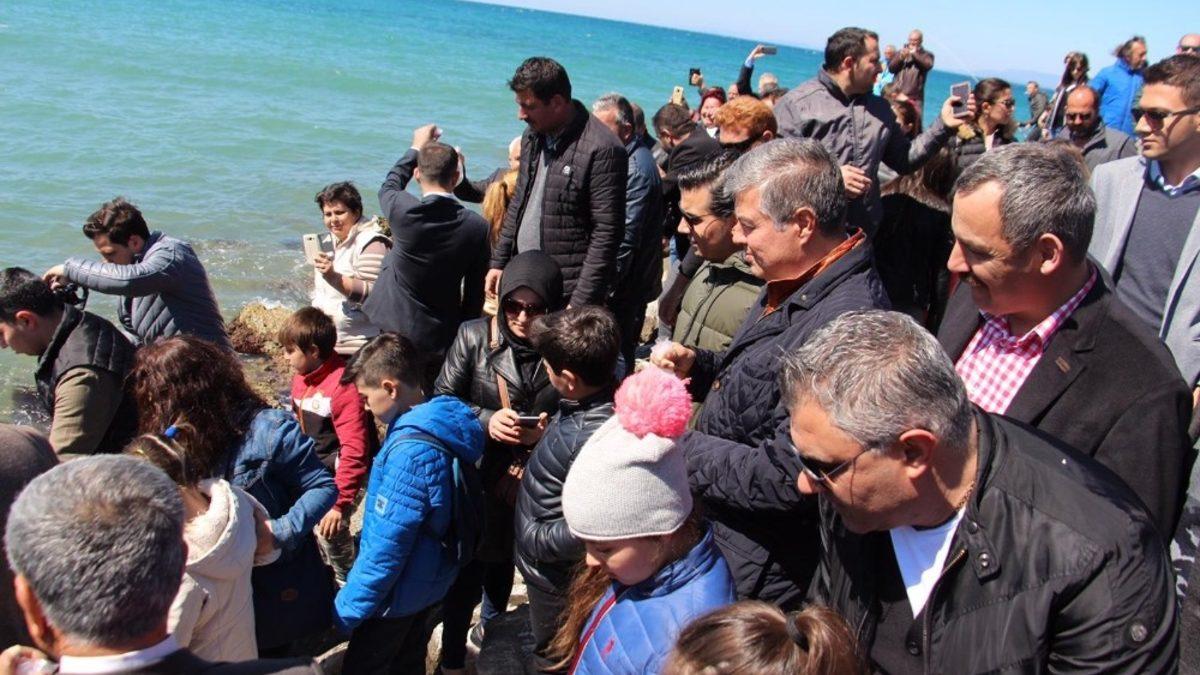 Cumhur İttifakı Kuşadası Belediye Başkan Adayı Fuat Akdoğan tarafından düzenlenen etkinlik kapsamında, 10 milyon balık yumurtası, 10 bin çipura ve 10 bin levrek yavrusu denize salındı.