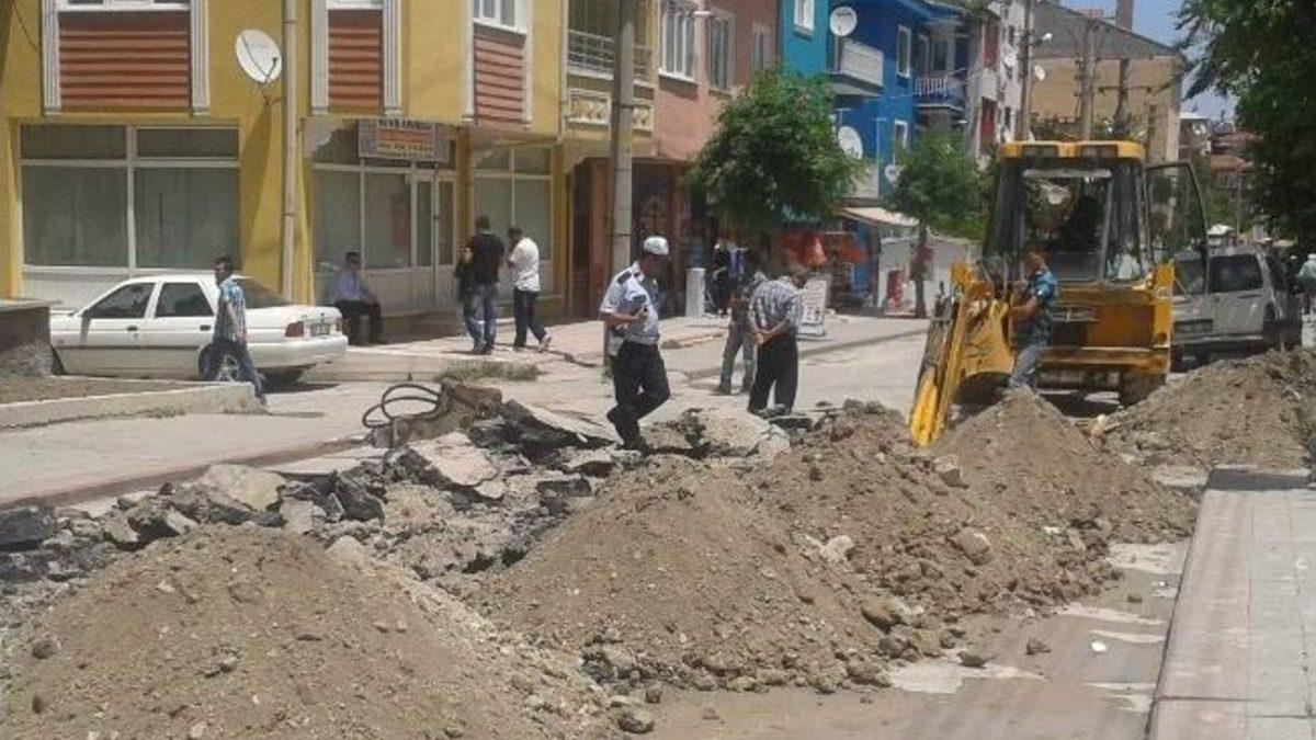 Kütahya'da belediye için altyapı çalışmalarını sürdüren taşeron firma çalışanları, bir sokakta iş makinesiyle kanal açarken doğalgaz borusunu patlattı.