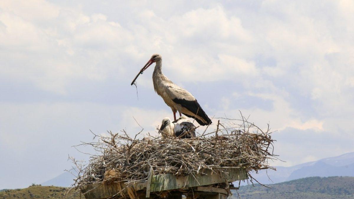 Mart ayından itibaren binlerce kilometre uzaklıktan Hürmetçi Sazlığı’na gelen leylekler her yıl aynı yuvalara yerleşiyor. Leylekler, Hürmetçi Sazlığı’nın sulak alanında besleniyor ve uzun yolculuklarında bir süre mola veriyor.