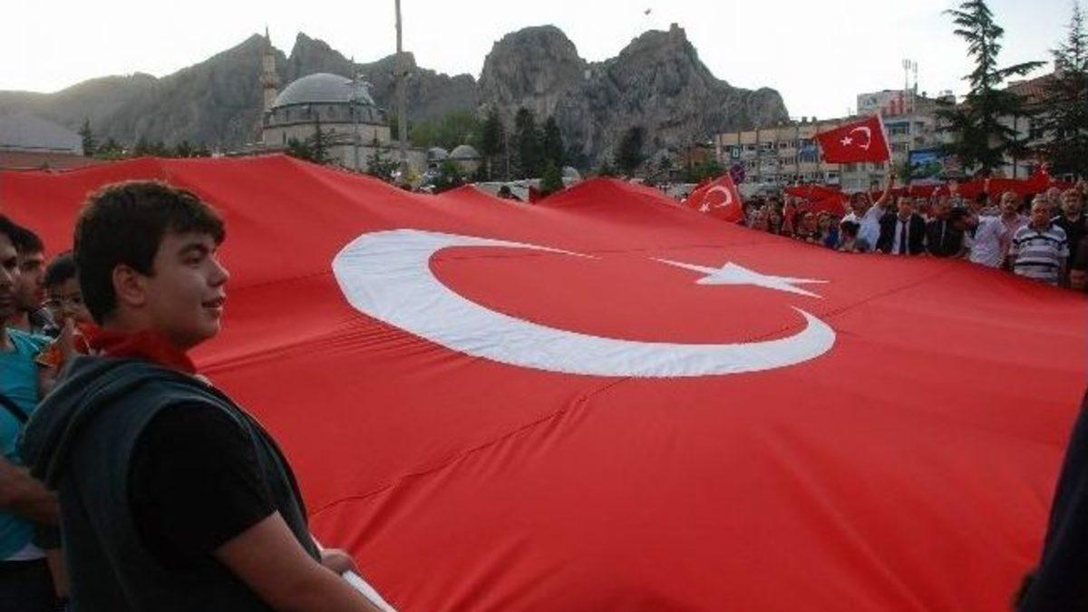 Tokat’ta, Diyarbakır’ın Lice ilçesinde askeri üstteki Türk Bayrağı’nın indirilmesi olayına karşı tepki yürüyüşü yapıldı.Tokat Ülkü Ocakları tarafından düzenlenen yürüyüşe MHP’liler ellerinde Türk bayrakları ile katıldı. Niksar yolu kavşağından Cumhuriyet Meydanı'na kadar yürüyüşe katılanlar, “Gönüllü askeriz, PKK’ya yeteriz”, “Tokatlı uyuma bayrağına sahip çık”, “Bayrağa uzanan eller kırılsın”, “Bozkurtlar burada, çakallar nerede” şeklinde slogan attı. Yürüyüş yapan gruba esnaf ve vatandaşlar alkışlayarak destek verdi. Cumhuriyet Meydanı'nda sona eren yürüyüşte konuşma yapan Tokat Ülkü Ocakları Başkanı Onur Çalışkan, bir grup teröristin 2. Hava Kuvvetleri'ne bağlı bir askeri alana girerek Türk bayrağını indirmesinin bardağı taşıran damla olduğunu kaydetti. Yüksek güvenlikli bir alanda bu hadisenin meydana gelmiş olmasının olayın vahametini artırdığını ifade eden Çalışkan, “Böylesi bir ihmal ve acziyet asla kabul edilemez. Bayrak, Türk milleti için her şeyden kutsal olan ve uğrunda milyonlarca şehit verilen bir değerdir. Bayrağımız bağımsızlığımızın simgesi olmanın yanı sıra bizim şerefimiz namusumuzdur. Bu şerefe ve namusa leke düşürmek hiç kimsenin hakkı ve haddi değildir” dedi.Pazar günü Lice’deki olayları protesto eden gruba Tokatlının gereken cevabı verdiğini ifade eden Çalışkan, “Biz Tokat’ı hiçbir zaman teröristlerin provokasyonlarına getirmeyeceğiz ve hiçbir zaman bunların Tokat’ta yapılanmasına müsaade etmeyeceğiz. Tokat’ta 3-5 PKK’lı çeşitli maskelerle halkın karşına çıktı. Dün de ilk defa kendi yüzleri ile ortaya çıktılar. Bu saatten sonra onlarla beraber yürüyen onlardandır. Herkes attığı adıma bu memleketin huzuru için dikkat etsin” diye konuştu.“EĞER TÜRK BAYRAĞI İNDİRİLİYORSA ORDU GÖREVİNİ YAPMAMIŞTIR”MHP Tokat İl Başkanı Murat Polat ise, askeri üstteki bayrağın bölücüler tarafından indirilmesine tepki göstererek, “Türk Ordu’su ne işe yarar? Biz bu orduyu ne diye besliyoruz. Genelkurmay Başkanı aldığı maaşı hak ediyor mu? Bağımsızlığını en büyük sembolü Türk bayrağıdır. Eğer Türk bayrağı indiriliyorsa ordu görevini yapmamıştır. Başta Genelkurmay Başkanı olarak derhal istifa etmelidir” şeklinde konuştu.Yapılan açıklamaların ardından eylem sona erdi.