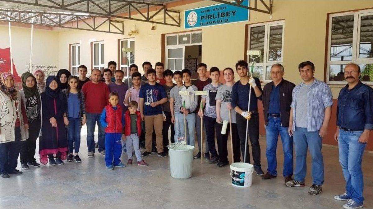 Aydın’ın Nazilli İlçesinde 2017-2018 Eğitim-Öğretim yılında faaliyete geçen Asımın Nesli Anadolu İmam Hatip Lisesi Proje Okulu’nun Sosyal Yardımlaşma ve Dayanışma Kulübü Üyesi 20 Öğrencisi Pirlibey ilkokulunu baştan aşağıya boyadı. Toplum yararına çalışma kapsamında hayata geçirdikleri projelerinde öğrenciler harçlıklarını biriktirerek önce boya aldılar, ardından da ilçeye 25 kilometre mesafedeki bir köy okuluna giderek hep birlikte okulu boyadılar.Gün boyu süren etkinlik kapsamında boya yapmayı da öğrenen öğrenciler hayatlarında ilk kez görev aldıkları projenin kendilerini çok mutlu ettiğini ifade ettiler. Hayatlarında ilk kez eline fırça alan öğrencilerin de yer aldığı boyama etkinliğinde boya yapmayı bilmeyen öğrenciler de boya yapmayı uygulamalı şekilde öğrenmiş oldu. İlkokulda eğitim gören bazı öğrenciler de okullarını boyamaya gelen abilerine ve ablalarına teşekkür etti.İlkokul müdüründen öğrencilere teşekkürÖğrencilere emeklerinden dolayı teşekkür eden Pirlibey İlkokulu Müdürü Ahmet Erdoğan; “Sosyal Sorumluluk Projesi kapsamında bize başvuran lise öğrencilerimizin duyarlı davranışı bizi çok mutlu etti. Öğrencilerimizin, çocuklarımızın, yardımlaşma, dayanışmayı öğrenmeleri ve köy okullarını, köy yaşantısını tanımaları açısından önem arzettiğinden projeyi kabul ettik. Müdürümüz eşliğinde gelen öğrencilerimiz bütün gün çalışarak okulumuzu boyadı. Bunu düşünen, planlayan herkese çok çok teşekkür ediyorum. Hafta sonu tatili olmasına rağmen bu öğrenciler bize zaman ayırdı. Ve bu tatil gününü bizim okulumuzu boyayarak geçirmeleri son derece önemli bir şey” dedi.İlkokul öğrencilerine hediyeNazilli Asımın Nesli Anadolu İmam Hatip Lisesi Proje Okulu Müdürü Bünyamin Aras, öğrencilerinin ilkokul öğrencilerine sürpriz bir hediyesi olduğunu ifade ederek, “Okulumuzun Sosyal Yardımlaşma ve Dayanışma Kulübü’nün organize ettiği toplum yararına çalışma kapsamında sosyal sorumluluk projemizi gerçekleştirdik. Okulumuzda yapılan imece ile öğrencilerin katkıda bulunduğu köy okulunu boyama projesi bağlamında ilçemize 25 kilometre uzaklıktaki Pirlibey İlkokulu’nu boyadık. Hem okulun boyası yenilensin hem de çocuklarımıza hediye olsun istedik. Öğrencilerimiz bu konuda öncü oldular. Fikrin sahibi ve uygulayıcısı tamamen öğrencilerimiz. Biz sadece onlara eşlik ederek güzel bir hafta sonu geçirmelerine de öncülük ettik” dedi.
