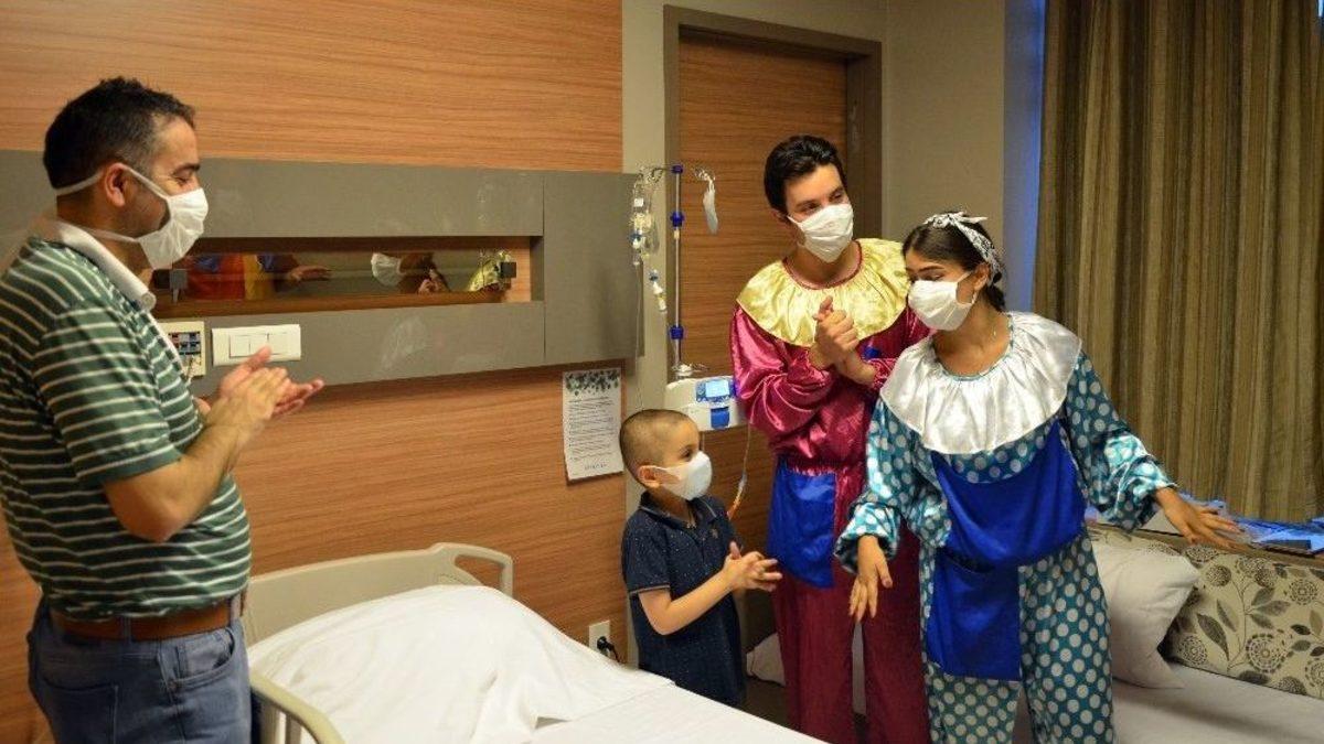Acıbadem Adana Hastanesi’nde gönüllü palyaçolar, lösemili çocuklara moral ve motivasyon olması için şarkılar söyledi, dans etti, hediyeler dağıttı.Acıbadem Adana Hastanesi’nde her Salı günü lösemili çocukların kaldığı kata gelen gönüllü palyaçolar, lösemili miniklerin kaldığı odalara tek tek girerek, şarkılar söyledi, hediyeler dağıttı. Palyaçoları karşısında gören çocukların mutluluğu gözlerinden okundu. Minik hastalar da zaman zaman palyaçolara katılarak dans etti. Gönüllerince eğlenen miniklerin aileleri ise bu uygulamadan çok memnun olduklarını dile getirdi.Projeyle ilgili konuşan gönüllü palyaçolardan Erol Olamcam, 5 senedir Acıbadem Adana Hastanesi’nde gönüllü palyaçoluk yaptıklarını belirterek, “Lösemili kardeşlerimize moral ve motivasyon olsun diye hem şarkılar söylüyoruz, dans ediyoruz hem de onlara hediyeler veriyoruz. Tedavisi biten hastalarımız ve aileleriyle dışarıda da görüşüyoruz. En azından bizi dışarıda gördüklerinde bir tebessüm veya arkamızdan ettikleri duaları hissedebiliyoruz" dedi.Her birinin farklı kurumlarda çalıştığı palyaçoların tamamı gönüllü olarak bu etkinliği düzenliyor. İlk olarak Avrupa Gönüllü Hizmeti projesiyle Avrupa’dan Türkiye’ye gelen gönüllü palyaçoların böyle bir projeyi başlattığını, sonrasında kendilerinin devam ettirdiğini söyleyen Olamcam, Türk gençlerine örnek olmak için de bu uygulamayı yaptıklarını söyledi.Gönülllü palyaçolar, ‘Her şey bir gülücük için’ sözüyle her Salı günü Acıbadem Adana Hastanesi’nde lösemili çocukları mutlu etmek için etkinliklerini sürdürüyor.
