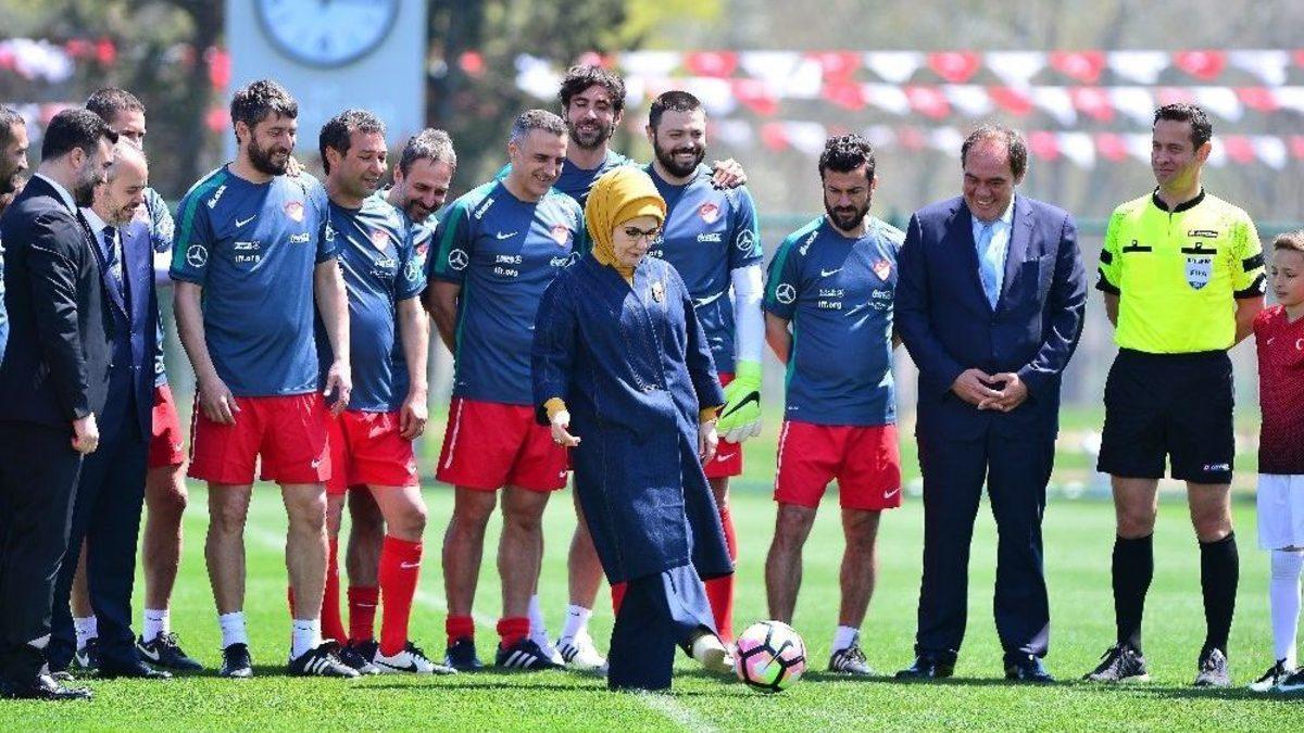 Cumhurbaşkanı Recep Tayyip Erdoğan’ın eşi Emine Erdoğan, 1. Spor ve Kültür Şenliği sonrası düzenlenen maçta başlama vuruşunu yaptı.Suriyeli ve Türk çocukların kaynaşmasını amaçlayan "Bir umut, Bir ufuk " projesi kapsamında Türkiye Futbol Federasyonu ve Toplumsal Gelişim Merkezi Eğitim ve Sosyal Dayanışma Derneği (TOGEMDER) işbirliği ile gerçekleştirilen "1. Spor ve Kültür Şenliği" Riva’daki Hasan Doğan Milli Takımlar Kamp ve Eğitim Tesisleri’nde yapıldı. 1. Spor ve Kültür Şenliği’ne Cumhurbaşkanı Recep Tayyip Erdoğan’ın eşi Emine Erdoğan, Gençlik ve Spor Bakanı Akif Çağatay Kılıç, TFF Başkanı Yıldırım Demirören, TFF Başkan Vekili Servet Yardımcı, Türkiye Futbol Federasyonu Yönetim Kurulu Üyeleri, Türkiye Futbol Direktörü Fatih Terim, Kulüpler Birliği Başkanı Göksel Gümüşdağ, TOGEMDER Başkanı Saadet Gülbahar ile davetliler katıldı.Etkinlikte şöhretler karması, Türk ve Suriyeli çocuklardan kurulan minik takımlar gösteri maçında karşı karşıya geldi. Maç başlamadan önce Emine Erdoğan, Suriye’de iç savaştan gelip Türkiye’ye sığınan ve Türk vatandaşlığına geçen Adem Metin Türk ile fotoğraf çektirdi. U14 milli Takımı’na da alınan Adem Metin, Emine Erdoğan’a kısa bir gösteri yaptı. Eğlenceli anlar dikkat çekerken, Emine Erdoğan daha sonra Adem Metin’e sarılarak genç sporcuyu tebrik etti. Ardından gerçekleşen şöhretler karması ve Türk ve Suriyeli çocuklardan kurulan minik takımların gösteri maçı öncesi santraya gelen Emine Erdoğan burada santra vuruşunu yaparak maçı başlattı. Eski futbolcular ve çocuklar burada Emine Erdoğan ile hatıra fotoğrafı çektirdi.