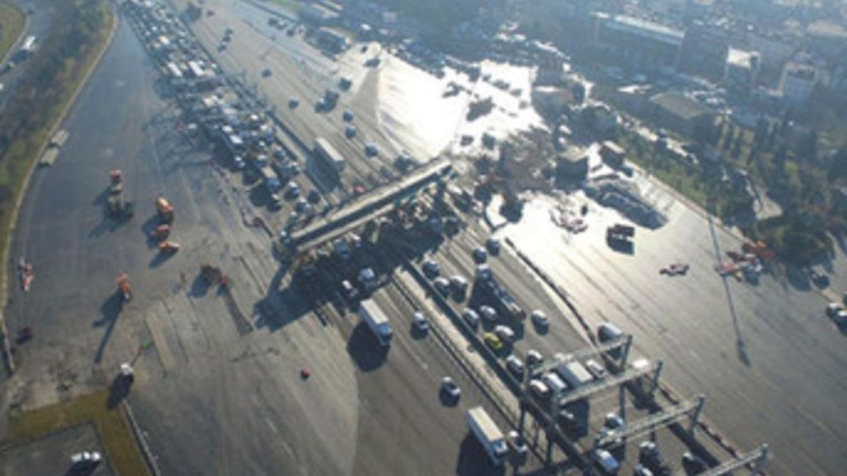 Mahmutbey gişelerde serbest geçiş sistemine geçişin ardından artık kullanılmayan eski gişelerin yıkım işlemi devam ediyor.