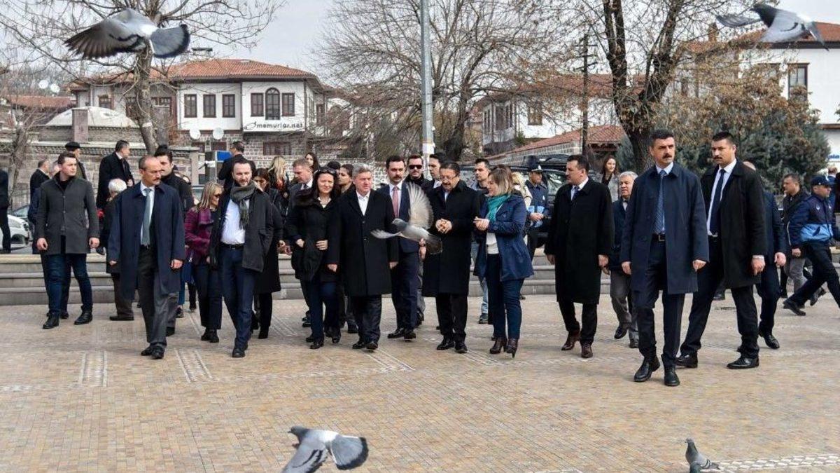Resmi ziyaretler için Cumhurbaşkanı Recep Tayyip Erdoğan’ın davetlisi olarak Türkiye’de bulunan Makedonya Cumhurbaşkanı Gyorge Ivanov, Altındağ’ı da ziyaret etti. Cumhurbaşkanı Ivanov ve eşi Maya Ivanov, Altındağ Belediye Başkanı Veysel Tiryaki tarafından Hamamönü’nde karşılandı.Ankara’da bulunan Makedonya Cumhurbaşkanı Gyorge Ivanov, eşi Maya Ivanov ile birlikte Altındağ’ı ziyaret etti. Altındağ Belediye Başkanı Veysel Tiryaki, Cumhurbaşkanı Ivanov ve beraberindeki heyete önce Altındağ’ın ve Hamamönü’nün tarihi hakkında kısa bir bilgi verdi. Bölgenin kültürel ve sanatsal dokusundan oldukça etkilenen Makedon konuklar, Hamamönü Sanat Sokağı’nda bulunan sanat atölyelerini de gezdi. Burada ebru çalışması yapan Cumhurbaşkanı Ivanov, keyifli dakikalar geçirdi. First Lady Maya Ivanov ise, kendisinin de bir önceki ziyaretinde yine aynı atölyede ebru çalışması yaptığını söyledi. Heyet daha sonra İstiklal Marşı’nın yazıldığı Mehmet Akif Ersoy Evi’ni ve Taceddin Dergâhı’nı gezdi.Makedon Cumhurbaşkanı ve eşinin Hamamönü’ndeki bazı konakları Türkçe telaffuz etmesi ve kendilerine ilgi gösteren vatandaşlarla Türkçe selamlaşmaları da dikkatlerden kaçmadı. Bu bölgenin kendi kültürleriyle büyük benzerlik gösterdiğini ifade eden Maya Ivanov, Makedon ve Türk kültürleri ve dilleri arasında oldukça büyük benzerlikler olduğuna dikkati çekti. Kabakçı Konağı’nda çay molası veren heyet, daha sonra Hamamarkası‘na geçti. Hamamarkası bölgesinde de restore edilen sokaklarda kısa bir gezinti yapan Cumhurbaşkanı Ivanov, eşi ve beraberindeki heyet, kısa bir süre önce kültür sanat evi olarak hizmete açılan Mevlevihane’yi de ziyaret ederek mini bir ney konseri dinledi.Cumhurbaşkanı Ivanov, “Eşim daha önce Hamamönü’nü ziyaret etmişti ve bana bu bölgeyi ne kadar beğendiğinden ve ne kadar güzel ağırlandığından bahsetmişti. Bizde bir söz vardır. Bir yere insan ilk gittiğinde meraktan gider. İkinci gittiğinde ise çok sevdiği için gider. Üçüncü kez gittiğinde ise artık alışkanlıktan gider. Burası bizim için alışkanlık oldu. Bu güzel bölgeyi turizme kazandıran ve tarihi değerlere sahip çıkan, her ziyaretimizde beni ve eşimi çok iyi karşılayan Sayın Başkan’a teşekkür ederiz” dedi.