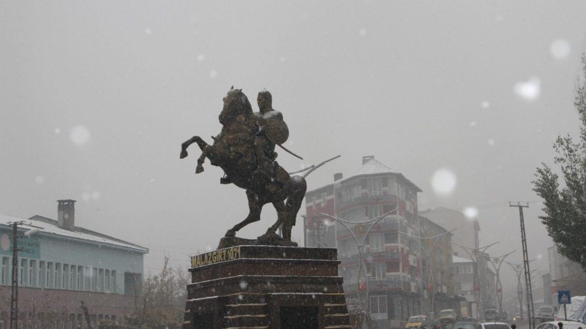 Muş’un Malazgirt ilçesinde etkili olan mevsimin ilk kar yağışı hayatı olumsuz etkiledi.