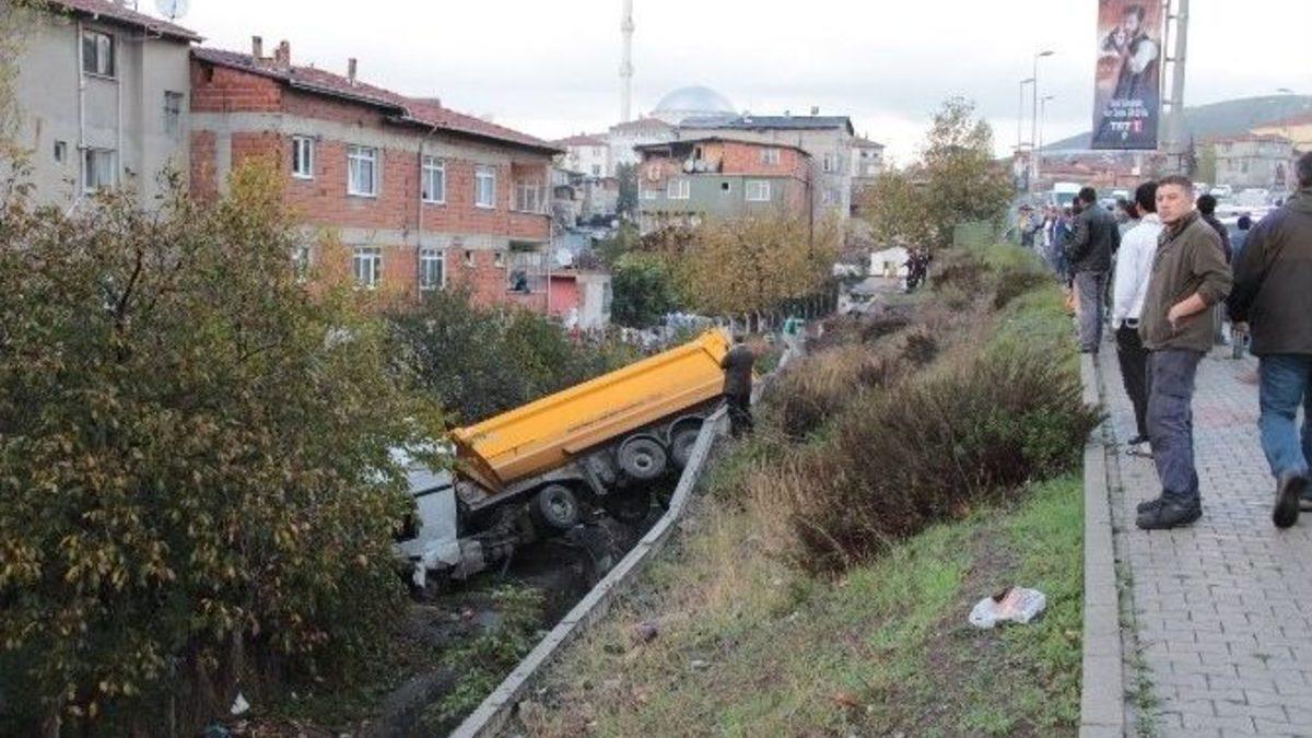 Maltepe’de yağmurun da etkisi ile kayganlaşan yolda kontrolden çıkan bir hafriyat kamyonu şarampole uçtu. Kazada kamyon sürücüsü yaralanarak hastaneye kaldırıldı.Maltepe Başıbüyük yolu üzerinden E-5 Karayolu istikametine seyir halinde giden Ersin Kayacan’ın kullandığı 34 VB 0495 plakalı hafriyat kamyonu, kaygan zeminde kontrolden çıkarak şarampole uçtu. Hemen yolun kenarında bulunan apartmanlarda oturanlar ise büyük panik yaşadı. Kazada araç içerisinde sıkışan sürücü Ersin Kayacan, olay yerinde gelen vatandaşlar tarafından kamyondan çıkarıldı. Yaralı sürücü olay yerine gelen ambulansla hastaneye kaldırıldı. Olay yerine gelen itfaiye ekipleri güvenlik önlemi alırken, polis de kaza ile ilgili inceleme başlattı.