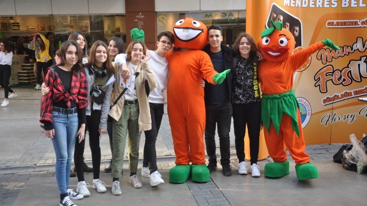 Geleneksel Gümüldür Özdere Mandalina Festivalinin maskotları Mandi ve Mandila, İzmir sokaklarında vatandaşları festivale davet etti.
