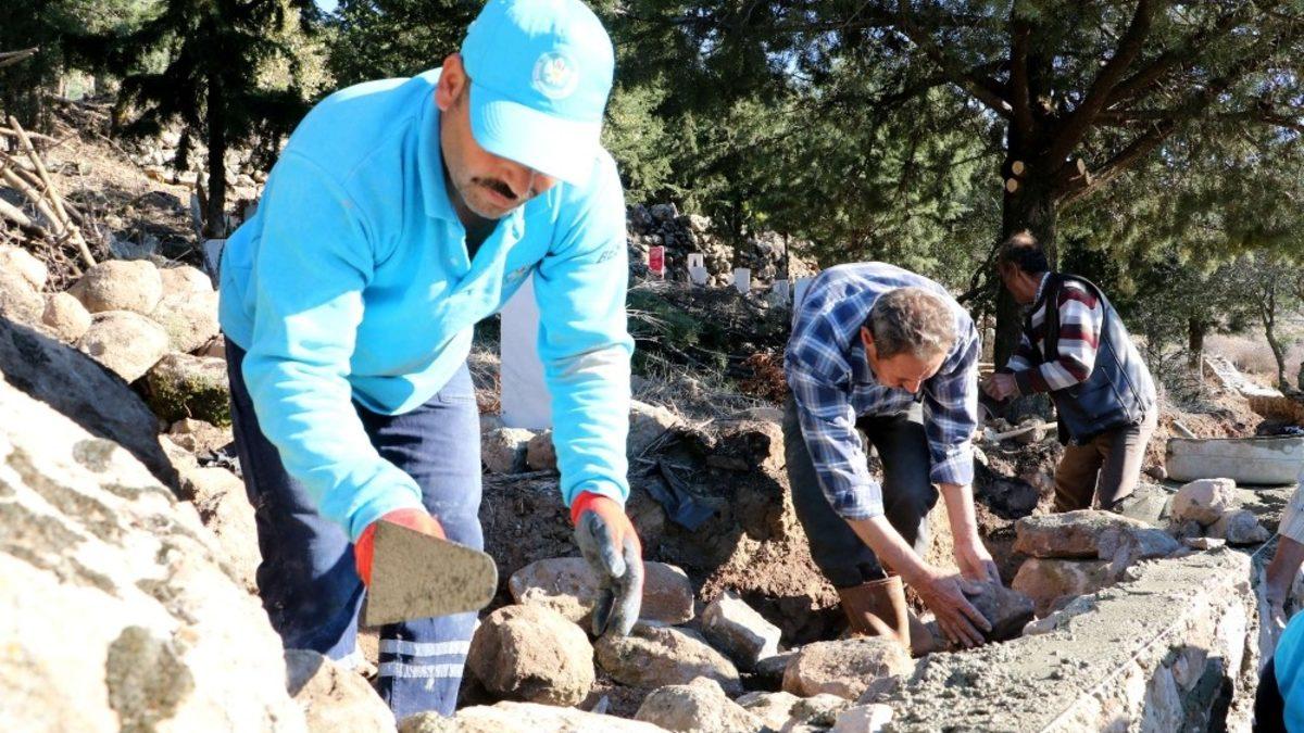 Manisa Büyükşehir Belediyesi ve Yunusmere ilçesinin Süngüllü Mahallesi’nde yaşayan vatandaşlar hizmet için birlikte çalıştı. Mahalle sakinleri ve büyükşehir belediyesi imece usulüyle mahalle mezarlığına yabani hayvan girişinin önüne geçmek ve daha güvenli hale getirmek amacıyla mezarlık duvarında tadilat çalışmasına başladı.
