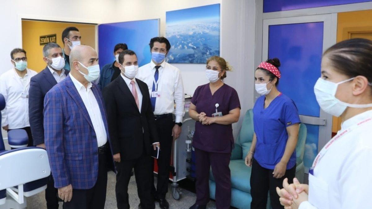 Mardin Valisi Mahmut Demirtaş, pandemi hastanesi olarak hizmet veren Mardin Devlet Hastanesini ziyaret ederek sağlık çalışanları ile bir araya geldi.