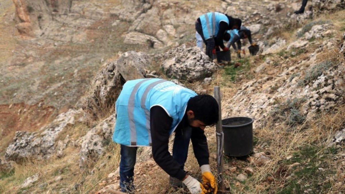 Mardin Büyükşehir Belediyesinin 2019 yılı sonuna kadar hedeflediği 100 bin tohumun toprakla buluşturulması çalışmaları devam ediyor.
