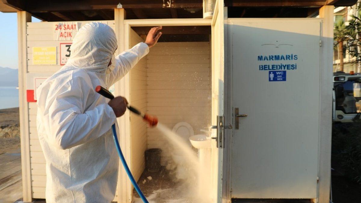 Kentin temizliği ile ilgili çalışmalarına aralıksız devam eden Marmaris Belediyesi, korona virüs salgınının ilk görüldüğü andan itibaren ilaçlama ve dezenfekte çalışmalarına ağırlık vermişti. Bu süreçte başarılı bir performans sergileyen belediye, vakaların artması üzerine rutin temizlik ve dezenfekte çalışmalarını yoğunlaştırarak halk sağlığını korumak için kolları sıvadı. Bu çerçevede Temizlik İşleri Müdürlüğü ekipleri sokakları, meydanları, oturma gruplarını, çöp konteynerlerini ilaçlı sularla yıkadı. Ardından ilaçlama ekipleri ilaçlama yaparak dezenfekte etti.