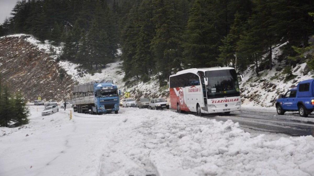 Konya’nın Seydişehir ilçesinde akşam saatlerinde başlayan yağmur, kar ve doluya dönünce Konya-Antalya karayolunda onlarca araç yolda kaldı. Kar yağışına hazırlıksız yakalanan sürücülerin araçlarını karda şortlarla inerek kurtarması ilginç görüntülere neden oldu.Seydişehir ilçesinde akşam saatlerinde başlayan sağanak yağış yüksek kesimlerde kar ve dolu olarak etkisini gösterdi. Konya Antalya karayolu üzerinde bulunan 1825 rakımlı Alacabel mevkiinde sürücüler kar yağışı nedeniyle zor anlar yaşadı. Kar ve doluya hazırlıksız yakalanan sürücüler araçları ile karayolu üzerinde ilerlemekte güçlük çekerken onlarca araç ise yolda kaldı. Yolda kalan araçların içerisinde bulunan ve Antalya’dan dönen sürücü ve yolcuların üzerlerindeki şort ile kar ve dolu birikintilerini temizleyerek araçlarını kurtarmaya çalışmaları ilginç görüntü oluşturdu.Öte yandan, Karayolları ekipleri kara saplanan araçların çıkarılmasına yardımcı oldu. Kar ve dolu yağışına ilk yakalananlardan olan ve aracını kaydıran Taner Polat Antalya’dan Konya’ya gittiğini söyleyerek, “Aniden yağış bastırdı, 20 dakika içerisinde bu hale geldi. Yol kenarında devam ederken böyle kenara düştük” dedi.