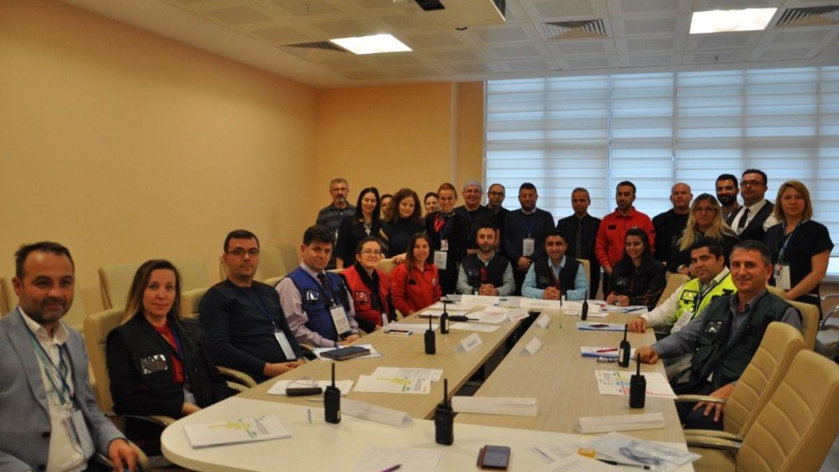 Tatbikat sonrasında toplanan Olay Yönetim ekibi tatbikatı değerlendirirken, Başhekim Ufuk Tali başarılı çalışmadan dolayı tüm ekibe teşekkür etti.