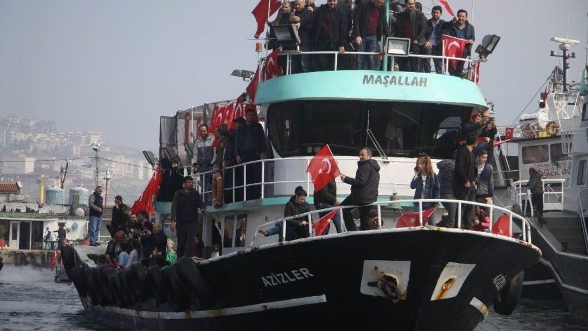 Tekirdağlı balıkçılar, Türk Silahlı Kuvvetlerinin (TSK) Afrin’e düzenlediği Zeytin Dalı Harekatı’na destek olmak için denize açıldı.Tekirdağ Süleymanpaşa ilçesi sahilinde Süleymanpaşa Su Ürünleri Kooperatifi tarafından yaklaşık 100 tane gemi ve tekne, Mehmetçiğin terör örgütleri PKK/KCK/PYD-YPG ve DEAŞ’a karşı başlatmış olduğu Zeytin Dalı Harekatı’na destek olmak için denize açıldı. Saygı duruşu ve İstiklal Marşı’nın okunmasından sonra Türk bayraklarıyla donatılan gemi ve tekneler, Tekirdağlı vatandaşların yoğun katılımı ile denize açıldı. Teknelere, genç yelken sporcuları da yelkenlileri ile eşlik etti.“Bugün balıkçı kardeşlerimiz denize çıkmadılar”Tekirdağ Merkez Su Ürünleri Kooperatifi Başkanı İbrahim Pehlivanoğlu, bu organizasyon için balıkçıların bugün balığa çıkmadığını belirterek, “Afrin’de şehit olan kardeşlerimiz için bir organizasyon yaptık. Allah’a şükür bugün balıkçı kardeşlerimiz denize çıkmadılar. Bugün herkes bir güzellik sağladı. Hepsinden Allah razı olsun. Mevlit okuttuk, pilavlarımızı dağıttık. Yaklaşık yüz tane teknemiz organize oldu. Tüm Tekirdağ halkımız davetli oldu. Böyle bir farkındalık yaptık, çok da güzel oldu. Herkesin de hoşuna gitti. İnşallah bundan sonra daha da güzel şeyler olacak” dedi.“Balıkçılar olarak biz de böyle bir organizasyon yaptık”Tekne kaptanı Oktay Okyay her zaman Mehmetçiğin yanında olduklarını vurgulayarak, “Afrin Harekatı’nı destekliyoruz, Mehmetçiğimizin yanındayız. Her zaman arkasındayız Mehmetçiğimizin. Allah onlara sağ salim dönmeyi nasip etsin. Balıkçılar olarak biz de böyle bir organizasyon yaptık. Sağ olsun halkımız teşrif etti. Herkesten Allah razı olsun” açıklamasını yaptı.“Allah annelerine, babalarına kavuştursun”Etkinliğe destek olmak için gelen Ayşe Yenici ise, “Her zaman arkasındayız Mehmetçiğimizin. Onlar bizim için oradalar. Allah yardımcıları olsun. Allah annelerine, babalarına kavuştursun onları. Herkes evlatlarına kavuşsun” diye konuştu.“Türkiye’de bir ilk olduğunu biliyoruz”Amatör balıkçılık yapan Hasan Yorgun da, “Bu etkinliğimizi kooperatifimiz düzenledi. Türkiye’de bir ilk olduğunu biliyoruz. Her zaman Mehmetçiğimizin, Türk ordusunun, polisimizin yanındayız. Allah onların hiçbirinin ayağına bir taş dahi dokundurmasın. Ülkemiz için her şey hayırlı uğurlu olsun” ifadelerini kullandı.Etkinlik, vatandaşlar tarafından doldurulan gemi ve teknelerin denizde tur atmasıyla son buldu.