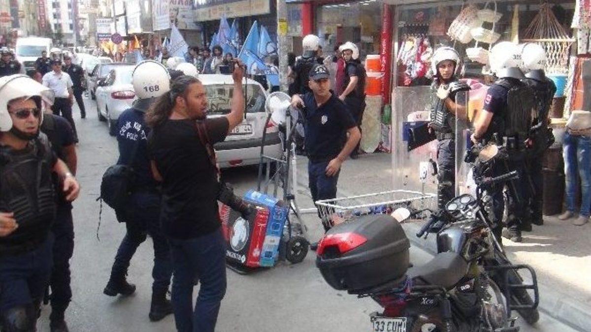 Mersin’de 11 Aralık 2015 tarihinde bir anma etkinliğini provoke etmek isteyen gruba yönelik yapılan müdahalede gözaltına alınan öğrencilerin 3. duruşması bugün başladı. Duruşmaya gitmek için Özgür Çocuk Parkı’nda toplanıp, adliyeye kadar yürüyen grup toplu olarak adliyeye girmek isteyince polis izin vermedi. Bunun üzerine polis ile grup arasında arbede çıkarken, arbedenin ardından grup tek tek çevik kuvvetin oluşturduğu koridordan aranarak içeri alındı.Mersin’de 11 Aralık 2015 tarihinde Mersin Üniversitesi (MEÜ) Çiftlikköy Kampüsü Prof. Dr. Uğur Oral Kültür Merkezi’nde gerçekleştirilen Hüseyin Nihal Atsız’ı anma etkinliğini bir grup öğrenci provoke etmek isteyince polis müdahalede bulunmuştu. Terör örgütü lehine de sloganlar atan gruba polis, gaz bombası ve plastik mermi ile müdahale etmişti. Polisin müdahalesiyle kampüsün üst kısımlarına kaçan göstericiler, burada yüzlerini bezle kapatarak yoldaki çöp konteynerlerini ateşe verip, eylemlerini sürdürmüştü. Taşlı saldırılara burada da devam eden göstericiler polisin müdahalesiyle ormanlık alana kaçmıştı. Polis de zırhlı araçla ormanlık alanda peşine düştüğü göstericilerden 14’ünü gözaltına almıştı.Nihal Atsız duruşmasının 3. duruşması bugün Mersin’de başladı. Duruşmada arkadaşlarına destek olmak istediklerini belirten bir grup, İstiklal Caddesi üzerinde bulunan Özgür Çocuk Parkı’nda toplanarak, adliyeye yürümek istedi. Polis ekipleri grubun önünü keserek, yürüyüşe ancak kaldırımdan, pankartsız ve slogan atmadan izin vereceklerini belirttiler. Bunu kabul eden grup, kaldırımdan yürümeye başladı. Bir süre sonra pankartları tekrar açan ve slogan atan grubun önü, Zeytinli Bahçe Caddesi’nde bir kez daha kesildi. Burada grup emniyet müdürleri tarafından son kez uyarılarak, pankartsız ve slogansız yürümelerine izin verildi. Mersin Adliyesi’ne kadar pankartları ellerinde yürüyen grup, pankartsız olarak tek tek adliye dış kapısından içeri alındı. Adliye A kapısından ise toplu olarak içeri girmek isteyen gruba, polis izin vermedi. Bunun üzerine polis ile grup arasında arbede çıkarken, grup tek tek çevik kuvvetin oluşturduğu koridordan aranarak içeri alındı.Polis yoğun güvenlik önlemlerini Adliye’de sürdürürken, duruşma da devam ediyor.