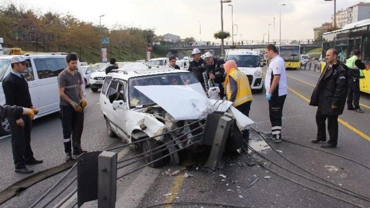 E-5 Karayolu Okmeydanı mevkiinde kontrolden çıkan bir otomobil metrobüs yoluna girdi. Kaza sonucu otomobil sürücüsü yaralanırken, metrobüs seferleri bir süre tek şeritten verildi.Kaza, saat 13.00 sıralarında E-5 Karayolu Okmeydanı mevkii Ankara istikametinde meydana geldi. İddiaya göre, Haliç’ten Okmeydanı istikametinde gitmekte olan Onur Ülger yönetimindeki 34 CIV 25 plakalı otomobil, sürücüsünün direksiyon hakimiyetini kaybetmesi sonucu kontrolden çıktı. Kontrolden çıkan otomobil, metrobüs yoluna daldı. Çevredeki vatandaşların ihbarı üzerine olay yerine polis, itfaiye ve ambulans ekipleri sevk edildi. Olay yerine gelen itfaiye ekipleri yaralı sürücüye ilk müdahaleyi otomobilin içinde yaptı. İlk müdahalenin ardından ambulansa taşınan Ülger, polis ekiplerinin kontrolünde Okmeydanı Eğitim ve Araştırma Hastanesi’ne kaldırılarak tedavi altına alındı. Kaza nedeniyle metrobüs seferleri bir süre tek şeritten verilirken E-5 Karayolunda ise trafik yoğunluğu oluştu.Araç, çekici yardımıyla yoldan kaldırılırken trafik ve metrobüs seferleri normale döndü.