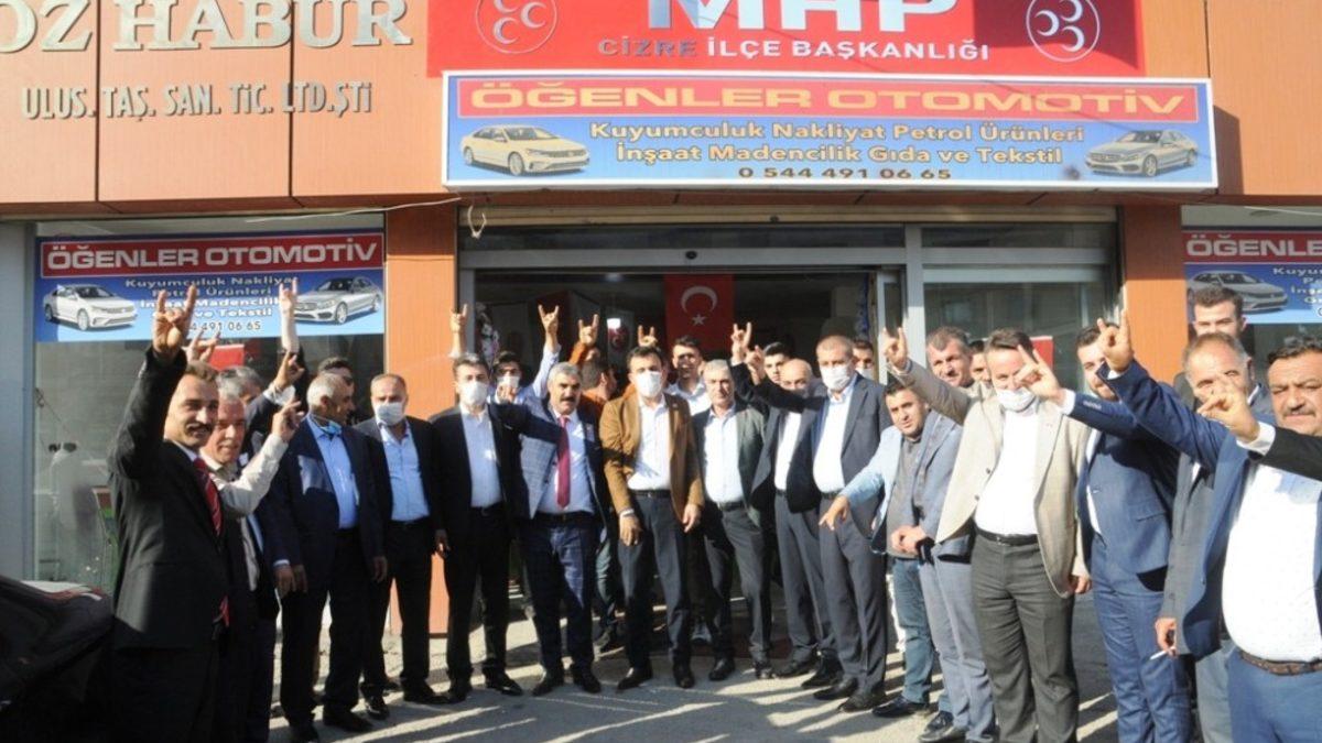 Alibey Mahallesi Belediye Caddesi üzerinde siyasi faaliyetlerini sürdüren daha sonra Nur Mahallesi Yafes Caddesi üzerinde bulunan yeni bir iş hanına taşınan MHP İlçe Başkanlığının açılışı gerçekleştirildi. Açılışa, MHP Şırnak İl Başkanı Halil Tatar, başkan yardımcıları, Cizre İlçe Başkanı Adil Page, Silopi, İdil, Beytüşşebap ilçe başkanları, eski Cizre Belediye Başkanı ve kanaat önderi Kamil Atak ile çok sayıda vatandaş katıldı. MHP Şırnak İl Başkanı Halil Tatar açılışa katılanlara teşekkür etti.