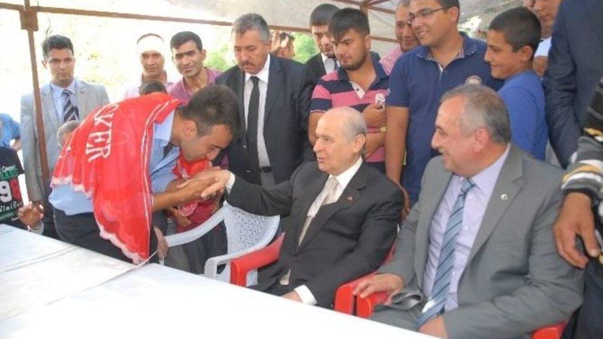 MHP Lideri Dr. Devlet Bahçeli, Burdur ziyareti kapsamında Ağlasun ilçesini ziyaret etti. Mehteran Ekibi’nin gösterisi ile karşılanan MHP Lideri Bahçeli, Ağlasun İlçe Meydanı’nda halka seslendi.Cumhurbaşkanlığı seçiminin milletin meselesi olduğunu dile getiren MHP Lideri Bahçeli, seçimlerde partizan yaklaşımlarda bulunulmaması konusunda uyarılarda bulundu.Başbakan Erdoğan’ın cumhurbaşkanı olamayacağını ifade eden Bahçeli, “Benim partimden olsun da isterse taştan olsun deme hakkına sahip değilsiniz. Çünkü devletin başına bir şahsiyeti cumhurbaşkanı olarak getireceksiniz. Onun için çok iyi değerlendirmek lazım. Ortadoğu kaynıyor. Birçok çatışmanın temelinde Şii- Sünni çatışması gözüküyor. Bunu Türkiye'ye Alevi- Sünni şekliyle yansıtmak isteyenler bulunuyor. Bunlara karşı birilerine 'Sen şusun sen busun' diyerek tahrik etmek, kışkırtmak doğru değildir. Yarın bunlar bir alev aldığı takdirde Ortadoğu'yu aşar, Mısır, Libya, Suriye, Irak gibi olmaz. Türkiye'de birikmiş öfkeler bir patlama gösterirse ne ortada AKP kalır ne de diğer siyasi partiler. 17 Aralık'tan 25 Aralık'tan ailecek aklanmadan paklanmadan Recep Tayyip Erdoğan başbakan olur, ama cumhurbaşkanı olamaz” dedi.Türkiye'nin parçalanmanın eşiğinde olduğunu iddia eden Bahçeli, IŞİD'in Türkiye üzerinde hesap yapmaya kadar ileri gidebileceğini vurguladı. IŞİD'in hala 49 konsolosluk görevlisini rehin tuttuğunu hatırlatan Devlet Bahçeli, bir bakanının 10 Ağustos'tan önce iade edileceğini açıkladığını söyledi. Bahçeli, "O zaman Recep Tayyip Erdoğan, IŞİD'le pazarlık mı yapıyorsun, 'Ver şu 49'u da ben de 49'u aşan oyla cumhurbaşkanı olayım' mı diyorsun. Bu nasıl bir anlayıştır, nasıl bir ateşle oynamaktır" diye konuştu.Cumhurbaşkanı adayı Ekmeleddin İhsanoğlu için oy isteyen Bahçeli, Başbakan Erdoğan'ın İstanbul mitingi için de "O kadar insanı bir araya getirecek devlet imkanını kullandıktan sonra o mitingleri yapmamak zaten mümkün olmaz" dedi. Bahçeli konuşmasına bir Adana fıkrası ile şöyle devam etti: “Oradaki at yetiştiricileri akıl veriyor. Bizimkilerin aklı ermeyince bizim Adanalı 'O kadar hızlandıktan sonra babam da atlar' diyor. Devletin her imkanını kullanacaksın sonra 'Ben reis-i cumhur olacaktım' diyorsun. Bu millet yapmazsa ne yapacaksın, Ağlasun'a gelip ağlayacak mısın?” şeklinde konuştu. Bahçeli, Cumhurbaşkanlığı seçimi için "Başınızı duvara vuracağınıza elinizdeki mührü olabileceğe vurmamızda fayda vardır" şeklinde konuştu.
