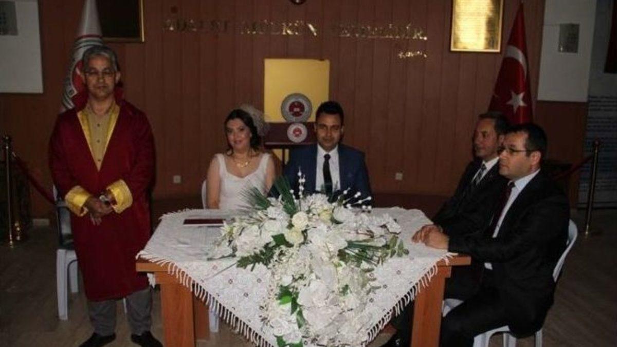 Milas Adliyesi’nde çalışan iki personel, iş yerlerinde gerçekleştirilen törenle dünya evine girdi.Milas Adliyesi’nde Cumhuriyet Başsavcılığı’nda 8 yıldır sekreter olarak görev yapan Hatice Kocagöz ile 2 yıldır katip olarak görev yapan Özer Gezer yapılan törenle nikahlandı.Adliye salonunda gerçekleştirilen törene; genç çiftin ailesi, yakınları, hakimler, savcılar ve diğer adliye personeli katıldı.Çiftin nikahını Milas Belediyesi Memuru Süleyman Esenkaya kıydı. Nikah şahitliklerini ise Milas Cumhuriyet Başsavcısı Bilal Gümüş ve Milas İlçe Emniyet Müdürü Mustafa Cüneyt Yörükoğlu yaptı.Çiftlerin nikah memurunun sorusuna evet cevabını vermesiyle, tören sonlandı. Genç çift gazetecilere yaptığı açıklamada, günlerinin büyük çoğunluğunu geçirdiği adliyede nikahlanmalarının kendileri için daha uygun olduğunu belirterek törene katılan herkese teşekkür etti.