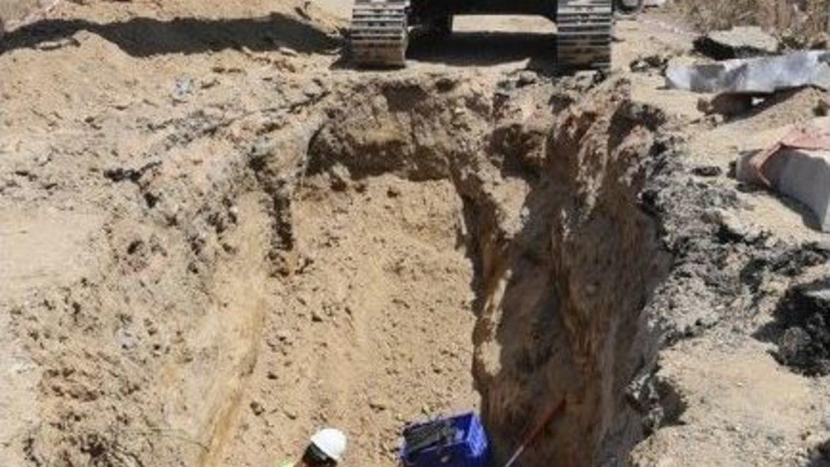 Milas’ta iş makinesiyle sürdürülen altyapı çalışmaları sırasında Roma dönemine ait olduğu düşünülen bir lahit mezar bulundu. İncelenen mezarda ilk belirlemelere göre toplam 8 kişiye ait iskelet ve altın ziynet eşyalarına, toprak kaplara rastlandı.Milas’ta devan eden altyapı ve kanalizasyon çalışmaları, birçok kültür varlığının gün yüzüne çıkmasına vesile oldu. Çalışmalar sırasında çok sayıda tarihi eser çıkarılırken; içinde 8 kişiye ait iskeletlerin bulunduğu bir lahit mezara daha rastlandı. Tarihi Gümüşlük Anıtı’nın bulunduğu Gümüşlük Mahallesi’ndeki çalışmalar sırasında ortaya çıkarılan lahit mezarda çalışma başlatan Milas Müze Müdürlüğü yetkilileri, mezarda altın ziynet eşyaları ve toprak kaplar buldu. Mezarda başlatılan kurtarma çalışmalarında elde edilen ilk bulgulara göre mezarın Roma Dönemi’ne ait olduğu düşünülürken; tam tarihlendirme yapılması için incelemeler devam ediyor. Kurtarma kazılarının tamamlanmasının ardından mermer mezarın bulunduğu yerden çıkarılarak Milas Müze Müdürlüğüne götürüleceği bildirildi.“MEZARI TAŞ SANDIK”Mezarı bulan iş makinesi operatörü Kemal Kabaç, çalışmalar sırasında zeminin sert olması nedeniyle kırıcı kullandıklarını belirterek şunları kaydetti; “Kazarak kanala doğru ilerliyorduk bu sırada sert bir cisimle karşılaştık. Bir kaya çıktı ve kırıcıyla kırınca bunun mezar olduğunu anladık ve hemen müze yetkililerine haber verdik” dedi.