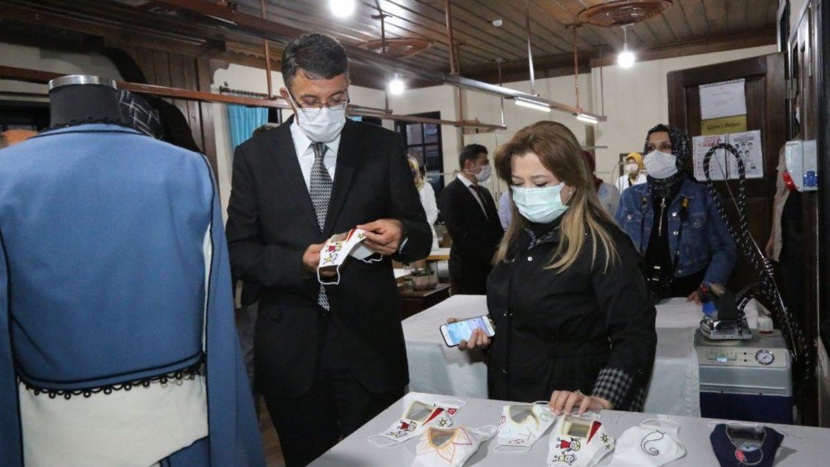 Kültürel mirası yaşatmak ve gelecek nesillere aktarmak amacıyla kurulan enstitüde dikiş, nakış, çini atölyelerini gezen Milletvekili Erenler ve Vali Çelik, atölyeler, kurslar ve maske üretimi konusunda Enstitü Müdürü Elif Telli’den bilgiler aldı.