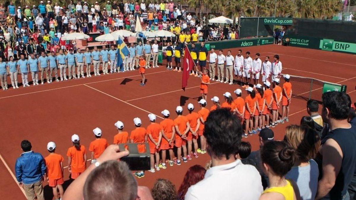 Antalya’nın Manavgat ilçesinde düzenlenen Türkiye-İsveç Davis Cup serisinin ilk günü konuk takımın 2-0 üstünlüğüyle tamamlandı.Davis Cup Avrupa/Afrika Bölgesi 2. Grup’ta Türkiye ile İsveç’i Antalya’da buluşturan ikinci tur serisinde ilk gün, iki tekler maçını da kazanan konuk ülkenin 2-0’lık üstünlüğüyle geçildi.Manavgat’taki Ali Bey Club tesislerinin ev sahipliği yaptığı organizasyonun ilk maçında korta çıkan Marsel İlhan, istediği performansı sahaya yansıtamadı. Türkiye’nin 1 numaralı oyuncusu konumundaki İlhan, Christian Lindell’e 6-1, 6-4, 6-4 mağlup oldu.Toprak zemindeki eşleşmenin ikinci karşılaşmasında ise büyük çekişme yaşandı. Müsabaka süreleri tutulmaya başladıktan bu yana Türkiye’nin Davis Cup tarihindeki en uzun maçı olarak kayıtlara geçen buluşmada Cem İlkel’i 4 saat 37 dakika sonunda 4-6, 6-3, 6-7, 7-6, 6-3 yenen dünya 154 numarası Elias Ymer, İsveç’i 2-0 öne taşıdı.Türkiye - İsveç Davis Cup serisinin ikinci gününde çiftler maçının heyecanı yaşanacak. Saat 14.00’te Altuğ Çelikbilek - Anıl Yüksel, Andreas Siljeström - Johan Brunström tandemleri kozlarını paylaşacak.