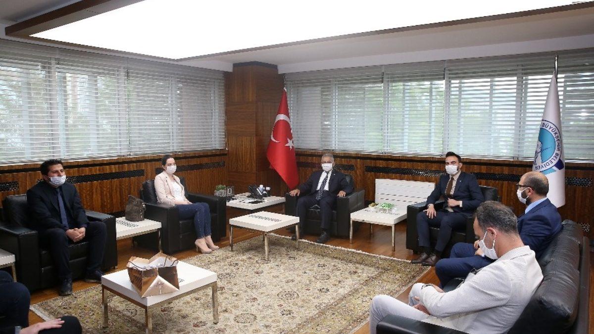 Kayseri Mimarlar Odası’nın Yönetim Kurulu Başkanı Halil Çevik ve yönetim kurulu üyeleri Büyükşehir Belediye Başkanı Dr .Memduh Büyükkılıç’ı ziyaret etti.