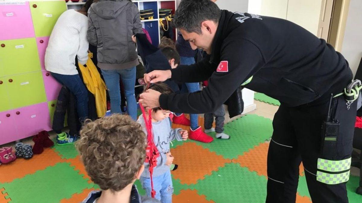Trafik Dedektifleri Projesi, kapsamında Gemerek Trafik Tescil Büro Amirliği tarafından minik öğrencilere kırmızı düdük dağıtıldı.