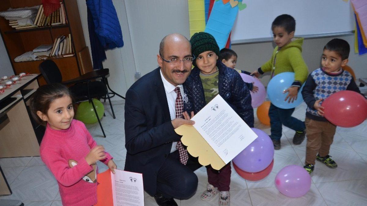 Karne dağıtım töreni, Kaymakam Aydın’ın miniklere karne ve çeşitli hediye takdimiyle sona erdi.