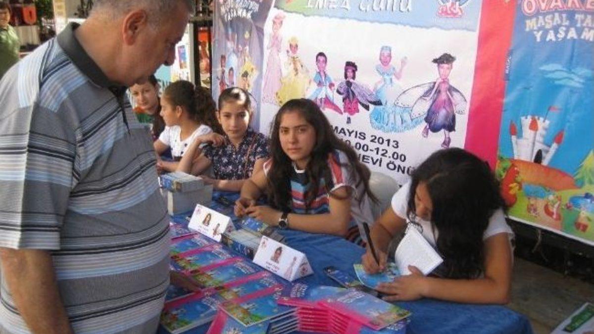 Çevreden geçen meraklı bakışlar altında yapılan sıra dışı imza törenine, kitaptaki masalların yazarı ortaokul öğrencileri katıldı.