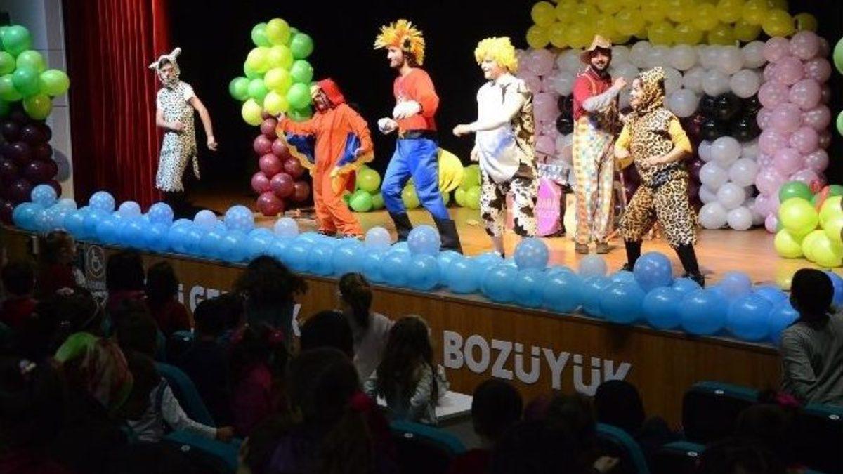 Uluslararası Bozüyük Metristepe Tiyatro Günleri kapsamında sahnelenen “Ali Baba’nın Balon Çiftliği” adlı oyunu izlemeye gelen minikler aynı zamanda balon şenliği yaşadı.Bozüyük Belediyesi tarafından bu yıl birincisi düzenlenen Uluslararası Bozüyük Metristepe Tiyatro Günleri’nde öğrenciler için tertip edilen “Ali Baba’nın Balon Çiftliği” adlı müzikli çocuk tiyatrosu 2 seans halinde sahnelendi. Oyuna Necip Fazıl Kısakürek İlkokulu 1. Sınıf öğrencileri, Saffet Şeker İlkokulu ana sınıfı, Atatürk İlkokulu ana sınıfı ve Öğretmen Bekir Aral İlkokulu Ana sınıfı öğrencileri katıldı. Kumbara Sanat Merkezi tarafından sunulan ve çocuklara hayvan sevgisini anlatan oyunda Ali Baba hayvanları ile birlikte çiftliğinde sürdürdüğü neşeli hayatına değişiklik yapmaya karar verip bir balon şenliği yapmaya karar veriyor. Balonlardan oluşan sahne dekorları ile de miniklerin gönlünü fetheden oyunun sonunda balon dağıtılması minikler tarafından büyük bir sevinçle karşılandı. Milli Eğitim Müdürlüğü ile yapılan program çerçevesinde tiyatro oyunlarını izleyen minikler belediye otobüsleri ile okullarından alınarak Kültür Merkezi’ne getirildi. Burada gösteriyi neşe içerisinde izleyerek balonlarla oynayan minikler oyunun bitiminde kendilerine kek ikramı yapılarak tekrar belediye otobüsleri ile okullarına götürüldü.