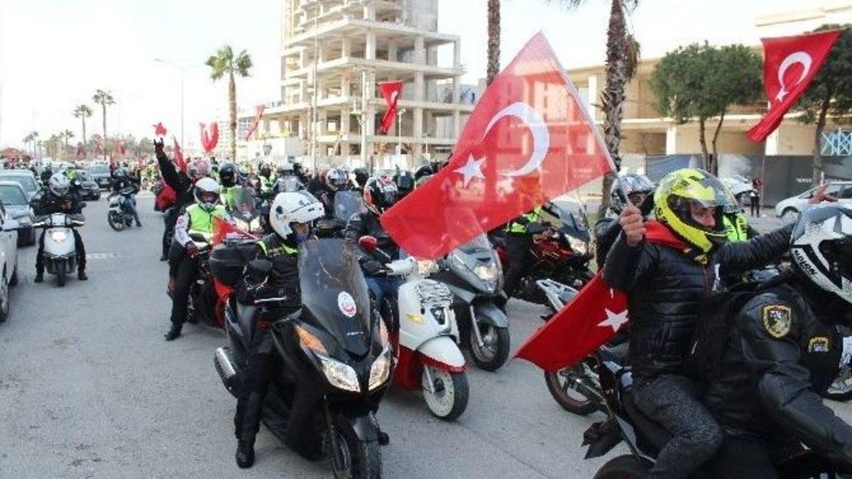 İzmir’de yüzlerce motorcu, araçlarını İzmir şehitleri polis Fethi Sekin ve adliye memuru Musa Can için sürdü. Motorcular, “Fethi Ağabey bizlere, Türkiye’ye, belki de dünyaya rokete, bombaya karşı tek tabanca aslanlar gibi yürüyebileceğimizi gösterdi” dedi.Motosiklet Kulüpler Birliğinin çağrısıyla terör saldırısının düzenlendiği İzmir Adliyesi’nde toplanan yüzlerce motorcu, Türk bayrağı astıkları motorlarıyla konvoy oluşturdu. Polis memuru Fethi Sekin’in şehit düştüğü yere karanfil bırakan motorcular, polis noktasında da dualar etti. İzmir Adliyesi’nde şehitler için saygı duruşunda bulunup, İstiklal Marşı okuyan motorcular, daha sonra şehit polisin oturduğu eve doğru araçlarını sürdü. Konvoya vatandaşlar da alkışlarıyla destek verdi. Sekin’in evinin önünde saygı duruşunda bulunup İstiklal Marşı okunurken, mahalleli ve motorcular hep bir ağızdan “Şehitler ölmez vatan bölünmez” ve “Şehidim hakkını helal et bize” şeklinde sloganlar attı.“Tek tabanca aslanlar gibi”İzmirli motosiklet kullanıcıları olarak saldırıda şehit düşen polis Fethi Sekin ve adliye çalışanı Musa Can’ı anmak için bir araya geldiklerini dile getiren Salih Özsüvariler, “Şehitlerimizi saygıyla ve rahmetle anıyoruz. Fethi ağabey, kendisini bizim için feda etti. Bizlere, Türkiye’ye, belki de dünyaya rokete, bombaya karşı tek tabanca aslanlar gibi yürüyebileceğimizi gösterdi. Fethi ağabey, o kadar büyük bir insandı ki önce bütün adliye, sonra tüm İzmir ve Türkiye onun arkasına sığındı. Eğer hakkımız varsa binlerce kez feda olsun, ruhu şad olsun. Allah emniyet mensuplarını ve silahlı kuvvetleri başımızdan eksik etmesin. İzmirli motorcular olarak emniyet güçlerimizin koruması dahilinde kanunlara ve yasalara saygılı olarak onlara destek olmaya her zaman hazırız. İhtiyaç hasıl olduğunda emniyet mensuplarımızla birlikte şehadete koşturmaktan bir saniye bile tereddüt etmeyiz. İhtiyaç hasıl olduğunda her zaman emirlerine amadeyiz. Allah hepsini korusun, ailelerine sabır diliyorum” diye konuştu.