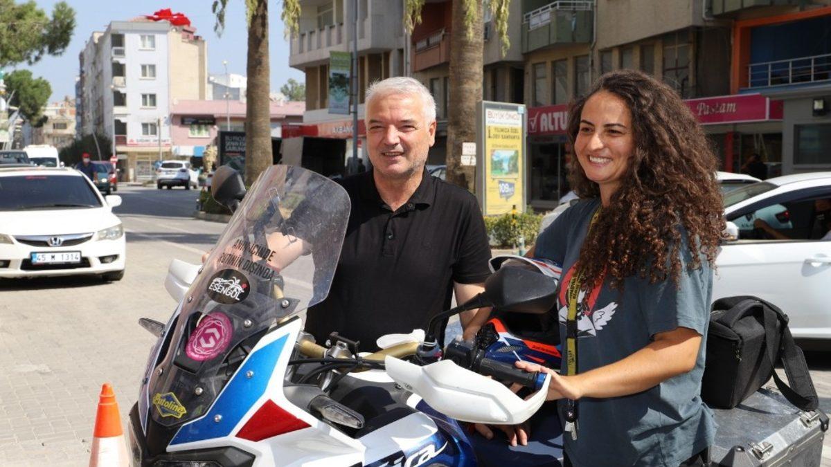 ’Kadınlar için daha özgür bir dünya’ sloganıyla 18 yıldır motosikletiyle Türkiye’yi ve dünyayı dolaşan İstanbul Gedik Üniversitesi Spor Bilimleri Fakültesi Öğretim Görevlisi Asil Özbay, bir süre önce çıktığı Türkiye turu kapsamında Manisa’nın Saruhanlı ilçesinde mola verdi.