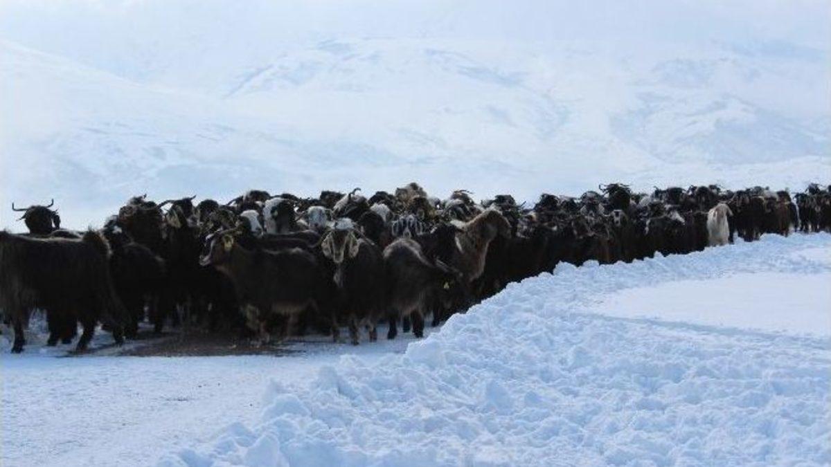 Muş’ta Üçevler bölgesindeki yaylalardan dönen sürü sahipleri, hayvanlarıyla birlikte mahsur kaldı. 13 vatandaş ve 700 hayvan, 3 saat sonra kurtarıldı.Merkeze bağlı Üçevler ve Arıköy köyü yaylalarından Muş’a gelen vatandaşlar, hayvanlarla birlikte tipi ve kar yağışının yoğun olduğu Çavuştepe mevkiinde mahsur kaldı. Kendi imkanlarıyla yola devam edemeyen vatandaşlar, İl Özel İdaresi Genel Sekreterliğini arayarak yardım istedi. Vatandaşların ihbarı üzerine bölgeye gönderilen iş makineleri, yaklaşık 2 saatlik çalışmanın ardından vatandaşlara ulaştı. Yol açma çalışmalarının ardından, mahsur kalan vatandaşlar ve hayvanlar kurtarılarak il merkezine ulaştırıldı.Burada gazetecilere açıklamalarda bulunan sürü sahiplerinden Hayrettin Toktaş, kara hazırlıksız yakalandıklarını belirterek, "Yolda kaldık, ekipler şu anda bize ulaştı ve yolumuzu açtı. Biz de yola devam ediyoruz" dedi.Üçevler Muhtarı Aydın Subaşı da, "Burada yaklaşık 700 hayvan var. Kar yağışından dolayı mahsur kaldılar. Gelip kurtardılar" diye konuştu.Kurtarma çalışmasını yerinde takip eden İl Özel İdaresi Genel Sekreteri Şeyhmus Yentür ise, "Üçevler bölgesinden 700 civarında hayvanın mahsur kaldığı ihbarını aldık. Özellikle Çavuştepe mevkiinde karın geçit vermediği yönünde ihbar geldi. Biz de iş makinelerimizi bölgeye yönlendirdik ve 5-6 tane sürüyü ve sahiplerini Çavuştepe’de kurtardık" dedi.