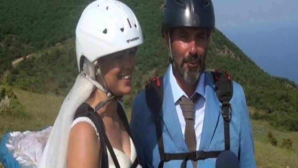 Tekirdağ’da yeni evlenen çift, yamaç paraşütü ile başlayan tanışmalarını evlendikten sonra da damatlık ve gelinliklerle yamaç paraşütü yaparak havada ölümsüzleştirdi.Tekirdağ’ın Şarköy ilçesi Uçmakdere’de yamaç paraşütü sporuna gönül veren çift, evliliklerini yamaç paraşütü ile ölümsüzleştirdi. Daha önce Uçmakdere'de Kıvanç Altun ile uçuşta tanışan Nilüfer Edizaslan Altun, evlendikten sonra eşinin kendisini uçurduğu gibi aldığı eğitimler sonrası eşini yamaç paraşütü ile uçurdu.Tekirdağ Yamaç Paraşüt Kulübü pilotlarından Kıvanç Altun ve kulübün tandem pilotlarından Nilüfer Edizaslan Altun, 600 metreden yaptıkları 15 dakikalık uçuşla, birbirlerine olan güvenlerini kanıtladı.Uçuş öncesi tanışmalarını ve evliliklerini anlatan Kıvanç Altun "Bundan 2 yıl önce eşim buraya uçmaya gelmişti, kendisini ben uçurdum. İlk uçuşunu benimle beraber yapmıştı. Daha sonra tekrar bir uçuş yaptık. Sonra kendisi de bizimle beraber eğitim almaya karar verdi. Eğitim aldıktan sonra kendi başına uçtu. Daha sonra birlikteliğimiz başladı. Evlenmeye karar verdik. Sonra eşim karar verdi. Ben de bu işi ilerleteceğim, öğreneceğim, ben de seni uçuracağım dedi. Şimdi de o sefadayız. Öyle bir ahtı vardı ve onu gerçekleştirmek için çalıştı" dedi.Eşine uçuş pilotluğu yapmanın mutluluğunu yaşayan Nilüfer Edizaslan Altun ise, eşinin kendisine hayatını teslim edip ellerinde olmasını istediğini dile getirerek, "Uçuşa geldiğimde uçmak çok hoşuma gitti. Hem gökyüzüne hem de kendisine aşık oldum. Sonra tekrar tekrar gelmeye başladım. Daha sonra kulüpte eğitim alarak tek başıma uçmak istedim. Yaklaşık 2 yıl boyunca çalıştım. Daha sonra da evlenmeye karar verdikten sonra ilk onun beni uçurduğu gibi ben de onu uçurmak istedim. Ben zaten normalde tek başıma uçuyorum ama eşimi tandemde uçurmak istedim. Tandem daha farklı bir kategori ve herkesin yapması zor. O yüzden de eşimin, erkek arkadaşımın bana bütün hayatımı teslim edip ellerimde olmasını istedim. Ben ona o şekilde güvendim onun da bana güvenmesini istedim. O da beni kırmadı" ifadelerini kullandı.19 Nisan’da evlenen çift 600 metreden yaptıkları yaklaşık 15 dakika süren uçuşla evliliklerin en güzel gününü havada yaşadı.