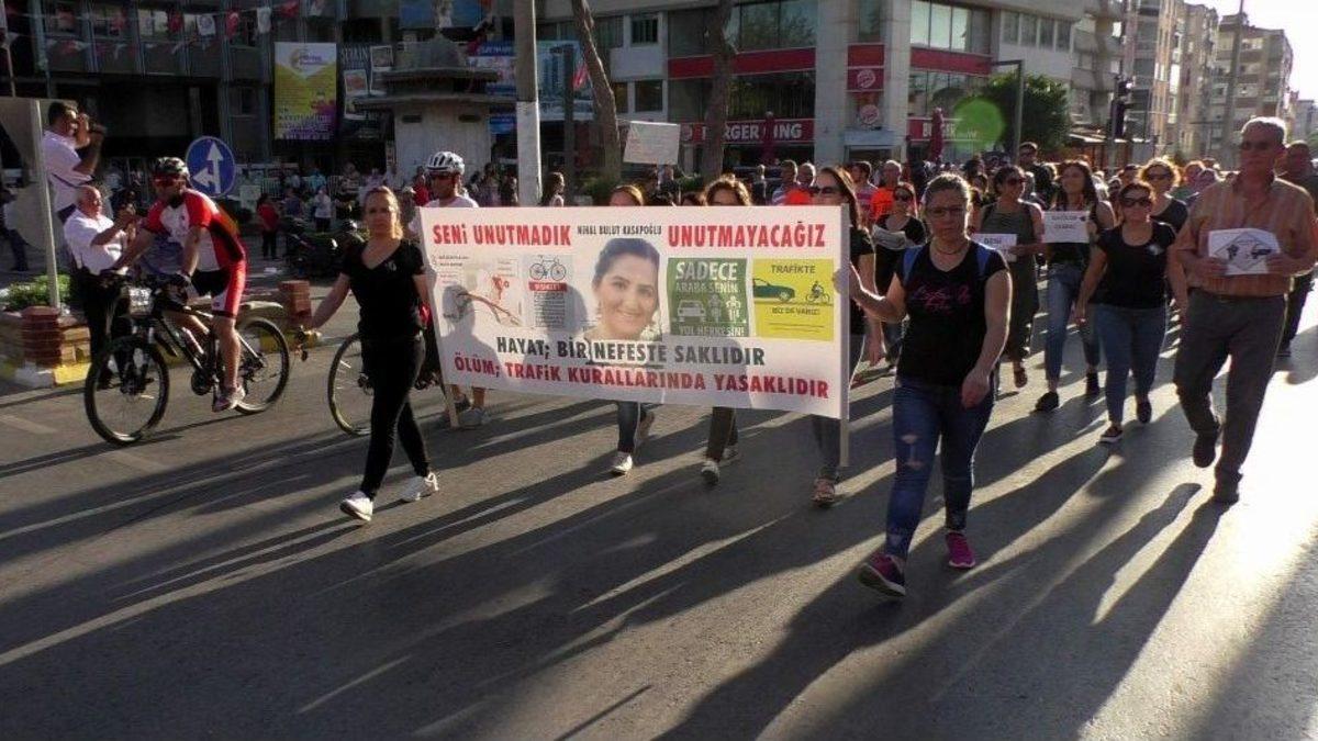 Aydın’ın Nazilli ilçesinde geçtiğimiz hafta bisikleti ile işe giderken dikkatsiz bir sürücünün kapısını açmasıyla yer düşerek başka bir aracın altında can veren Nihal Bulut Kasapoğlu’nu anmak ve trafikteki bisiklet sürücülerine dikkat çekmek için etkinlik düzenlendi.