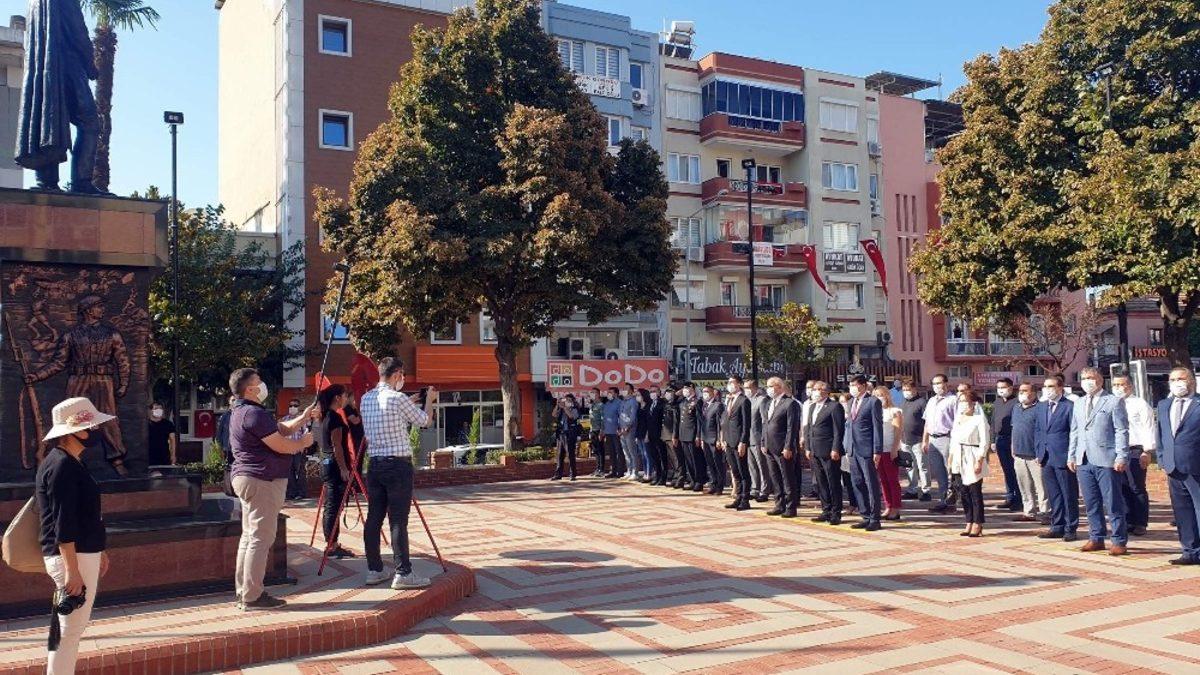 Aydın’ın Nazilli ilçesinde kutlanan tören Nazilli Kaymakamlığı ve Belediye Başkanlığı çelenklerinin Atatürk Anıtı’na bırakılmasıyla başladı. Nazilli Kaymakamı Sedat Sırrı Arısoy, Belediye Başkanı Kürşat Engin Özcan, Cumhuriyet Başsavcı Vekili Ali Kaya, Nazilli İlçe Emniyet Müdürü Korhan Özmenlikan, İlçe Jandarma Komutanı Binbaşı Hakdan Öztürk, daire müdürleri, protokol üyeleri, siyasiler ve sivil toplum örgütü temsilcilerinin yanı sıra davetliler katıldı.